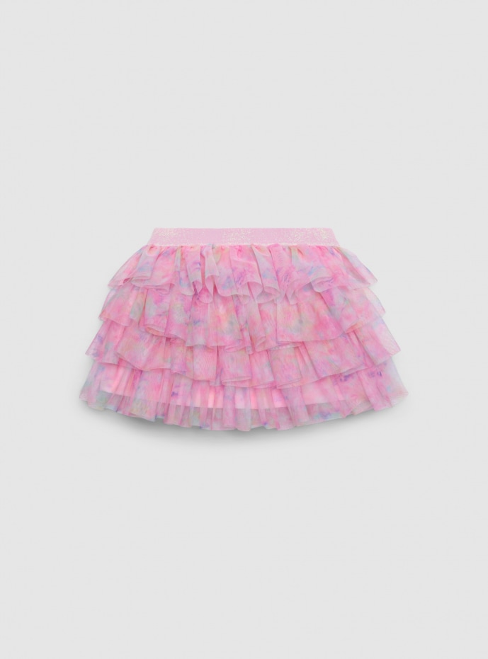 Gonna da bambina a balze in tulle, perfetta per occasioni speciali e feste. Lunghezza mini e vita con effetto luccicante che assicura comfort e facilità di indosso. La fantasia è multicolor con sfumature, ideale da abbinare a maglietta e ballerine o cardigan e sneakers per look vivaci.