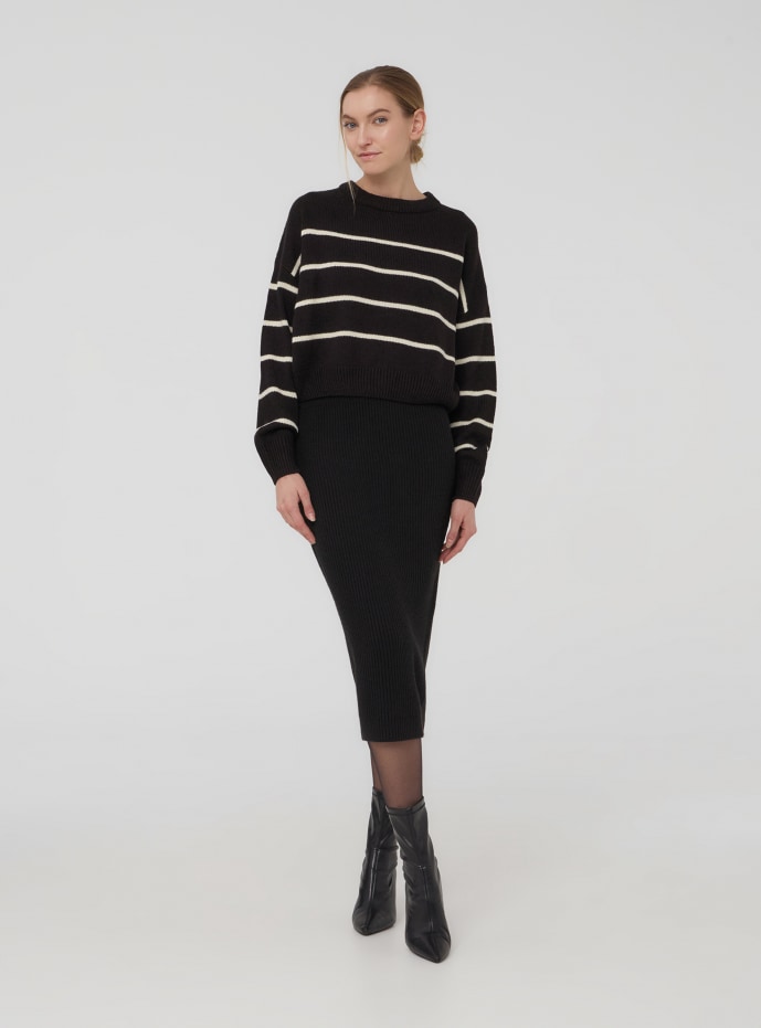 Gonna da donna lunga in maglia, realizzata in misto lana, che dona calore e morbidezza al capo. Caratterizzata da un design essenziale e tinta unita, valorizza la silhouette con eleganza. Il tessuto a maglia offre una texture raffinata e confortevole, ideale per completare outfit sofisticati o casual. La sua lunghezza la rende perfetta per ogni occasione, dal lavoro alle serate più speciali. Un capo versatile e di tendenza per il guardaroba femminile.