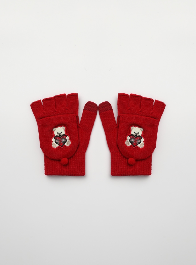Guanti da donna a manopola senza dita, perfetti per tenere le mani al caldo senza rinunciare alla praticità. Modello con pompon, impreziosita da ricamo orsetto sul dorso. Polsino a coste per maggiore aderenza e dita scoperte con polpastrelli adatti all’uso di dispositivi touch. Ideali per il tempo libero e look casual in tinta unita.