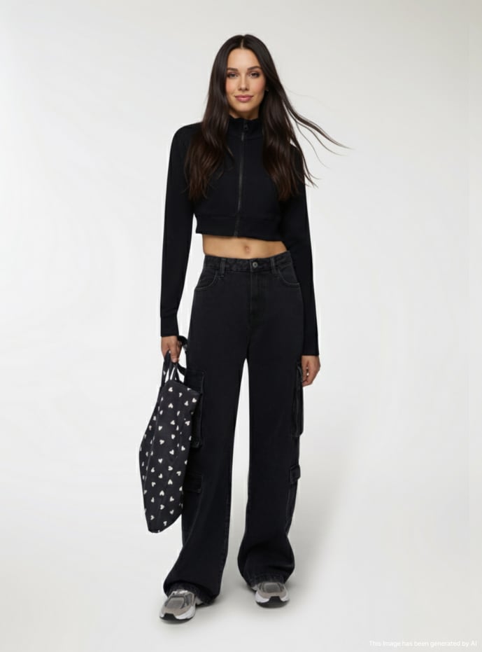 Jeans da donna con design cargo, caratterizzati da tasche multiple e vestibilità ampia. Ideali per un look urbano e casual, si abbinano perfettamente a magliette e sneakers per un outfit comodo e alla moda. La chiusura con bottone e zip garantisce praticità, mentre il taglio ampio offre comfort e stile.