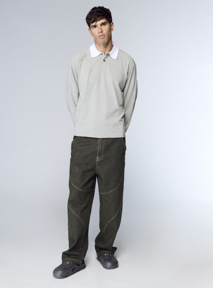 Jeans da uomo a tinta unita con vestibilità over e gamba dritta, perfetti per look urban e casual. Chiusura con bottone e zip, passanti per cintura e tasche laterali inclinate più una tasca posteriore a filetto. Le cuciture sagomate effetto biker donano carattere e dinamismo. Ideali con felpa e sneaker nel tempo libero o con camicia oversize per uno stile street ricercato. Questo articolo fa parte del progetto TRNPOPLAB nato dalla collaborazione con NABA Milano. Gli studenti di fashion design hanno dato vita a collezioni ispirate ai trend più cool del momento. E ora vedranno le loro creazioni prendere vita e arrivare direttamente nelle tue mani!