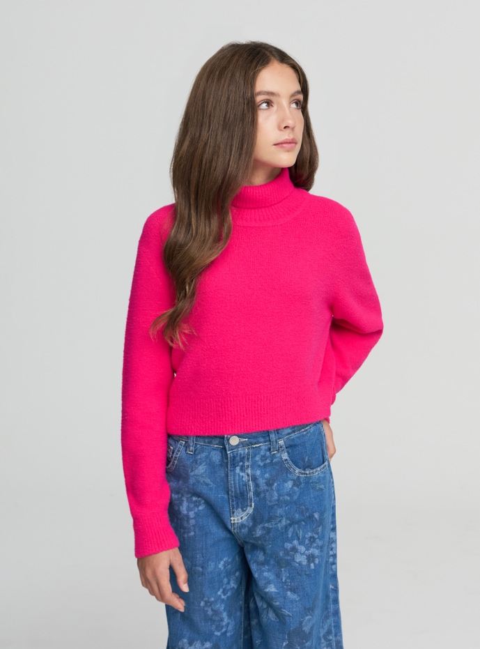 Maglia da bambina con collo dolcevita e maniche lunghe in tinta unita. Si abbina facilmente a jeans a vita alta o gonne. Polsini e fondo a coste per una migliore aderenza e comfort quotidiano. Perfetta per la scuola o il tempo libero, si indossa sotto giacche leggere o cardigan per creare outfit versatili e alla moda.