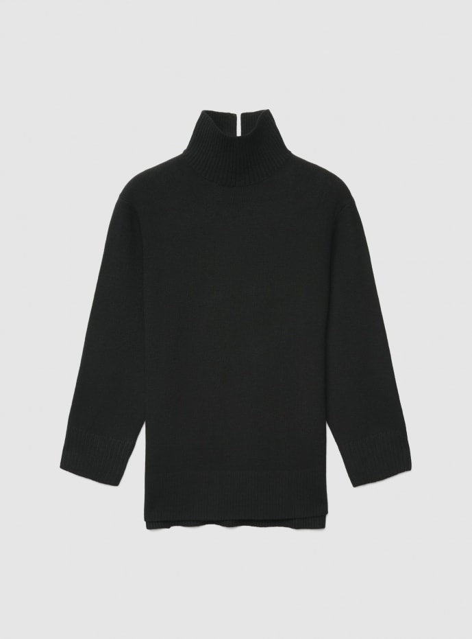 Maglia dolcevita da donna a tinta unita, con maniche lunghe e spacchi laterali che donano movimento e modernità al look. Il collo alto avvolge delicatamente il collo per una sensazione di calore e comfort, ideale per la stagione invernale. Perfetta da indossare con jeans skinny o pantaloni palazzo, è un capo versatile che unisce semplicità e stile in un design essenziale ma sempre di tendenza.