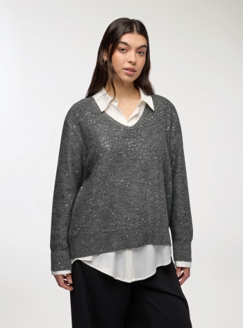 Maglia da donna caratterizzata da un elegante scollo a V, ideale per creare look raffinati e femminili. Questo capo presenta una lavorazione traforata che aggiunge un tocco di leggerezza e ricercatezza. Le finiture a costine contribuiscono a definire i dettagli e a migliorare la vestibilità . Con il suo design versatile, si adatta facilmente sia a outfit casual che a combinazioni più sofisticate, risultando perfetta per ogni occasione in cui si desidera unire comfort e stile. La vestibilità èregular, garantendo un comfort ottimale per tutta la giornata.