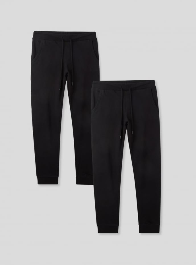 Confezione composta da 2 pantaloni della tuta da donna, ideali per un look casual e rilassato durante il tempo libero o le attività sportive leggere. Realizzati in tessuto leggero, offrono un comfort ottimale grazie all'elastico in vita e la coulisse. Dotati di pratiche tasche laterali per piccoli oggetti, sono rifiniti con polsini sul fondo per una vestibilità stabile e comoda. Il design a tinta unita li rende versatili e adatti a ogni occasione informale, abbinandosi facilmente a felpe e t-shirt.