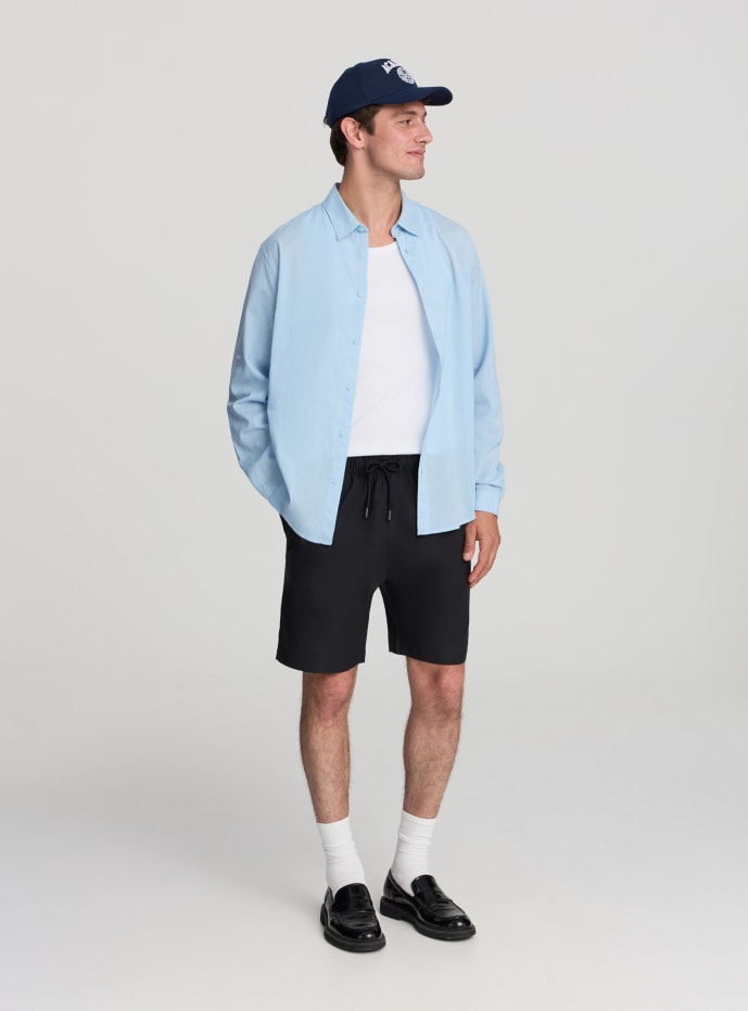 Pantaloncini da uomo con coulisse in vita. Dotati di pratiche tasche laterali, sono ideali per il tempo libero, le vacanze o le passeggiate estive. In tessuto tecnico tinta unita sono perfetti da abbinare a t-shirt o canotte per un look comodo e casual.