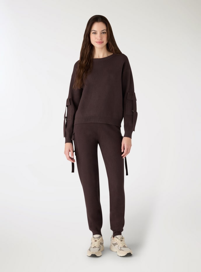 Pantaloni da donna tinta unita con taglio jogger e dettagli cargo. Vita elasticizzata, comodi per il tempo libero e per look casual. Tasche laterali applicate con patta e inserti decorativi, fondo con polsini lavorati che definiscono la gamba. Facili da abbinare a felpe o magliette e sneakers per un outfit urbano e rilassato.