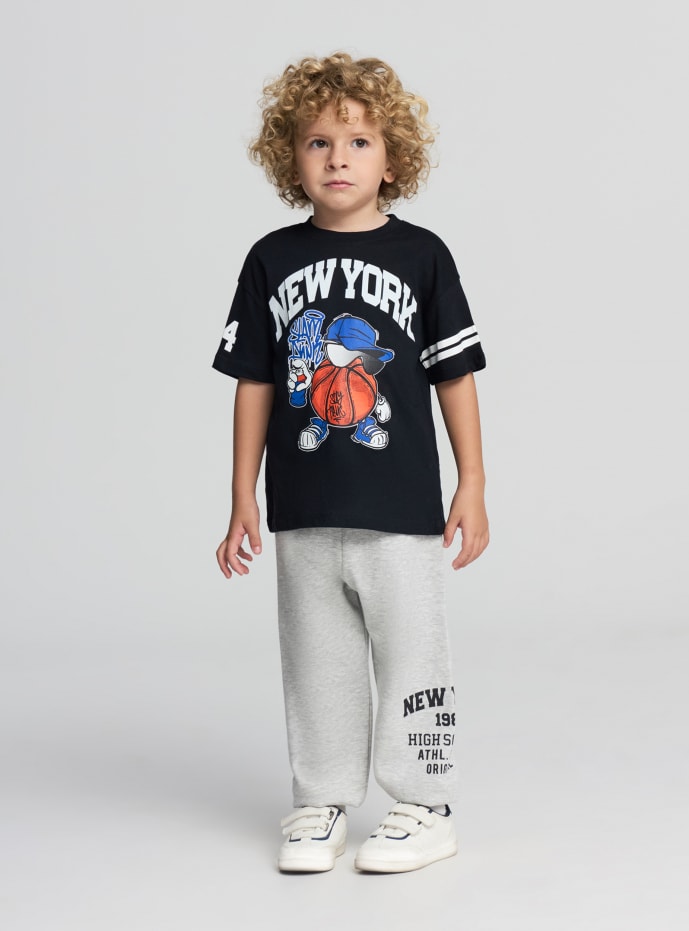 Pantaloni pesanti della tuta da bimbo ideali per il tempo libero e le attività sportive. Presentano una scritta sulla gamba e una vita elasticizzata con coulisse regolabile per un comfort ottimale. Il fondo elasticizzato assicura una vestibilità pratica e moderna, perfetta da abbinare a felpe o t-shirt per un look casual e dinamico.