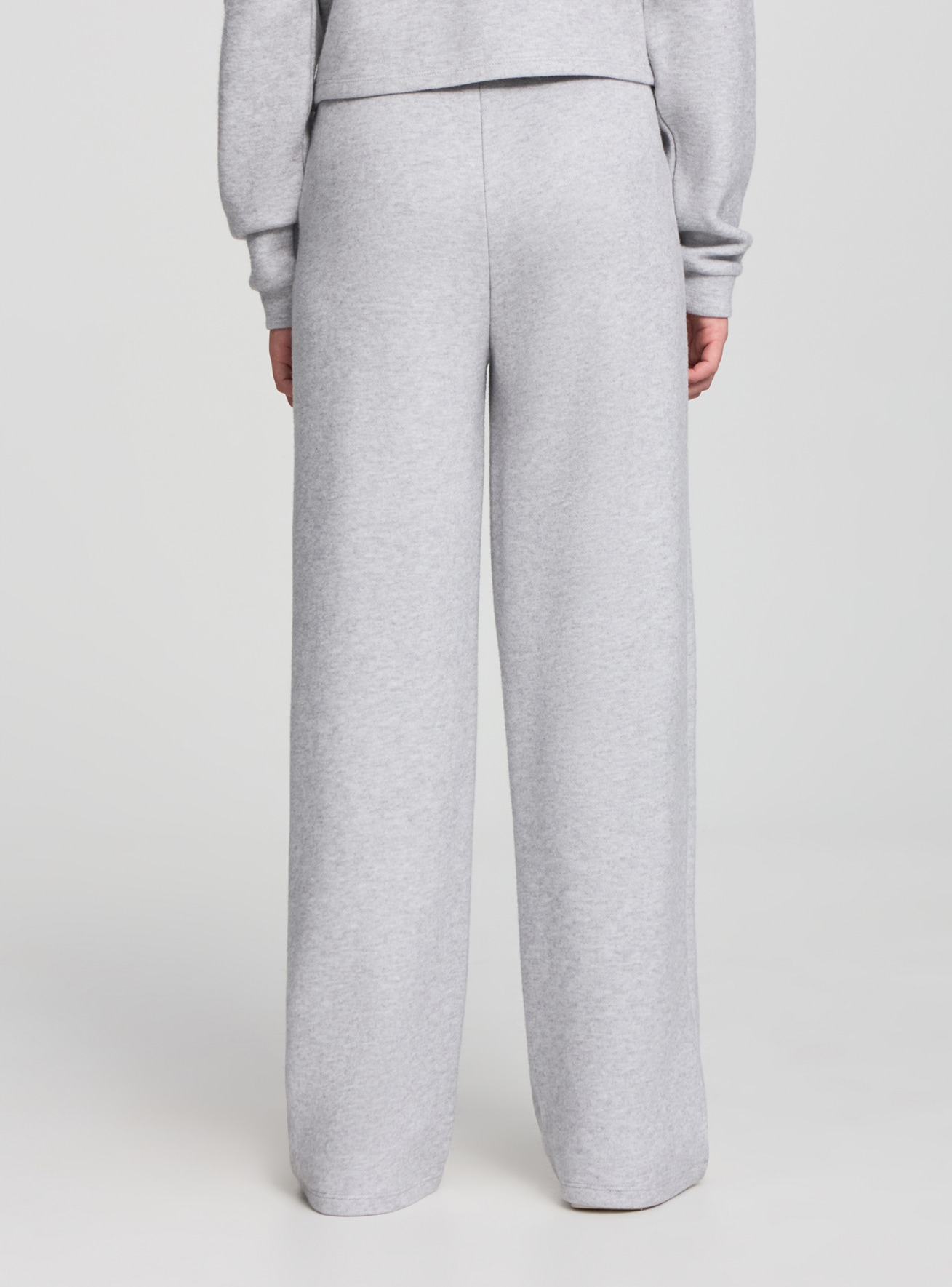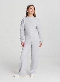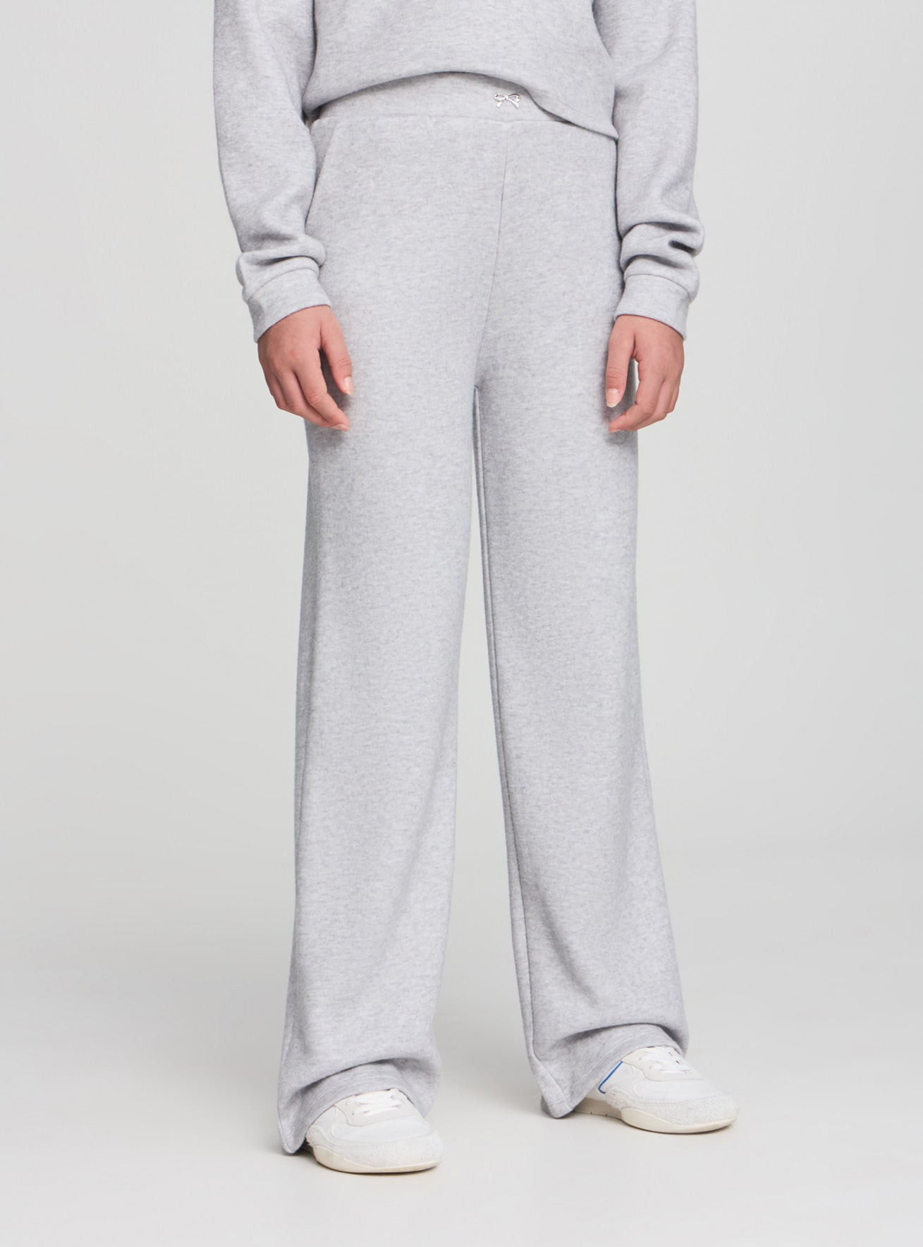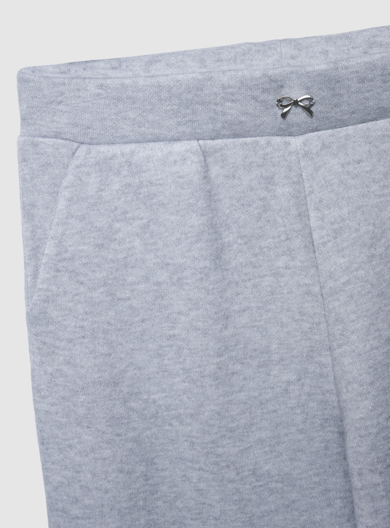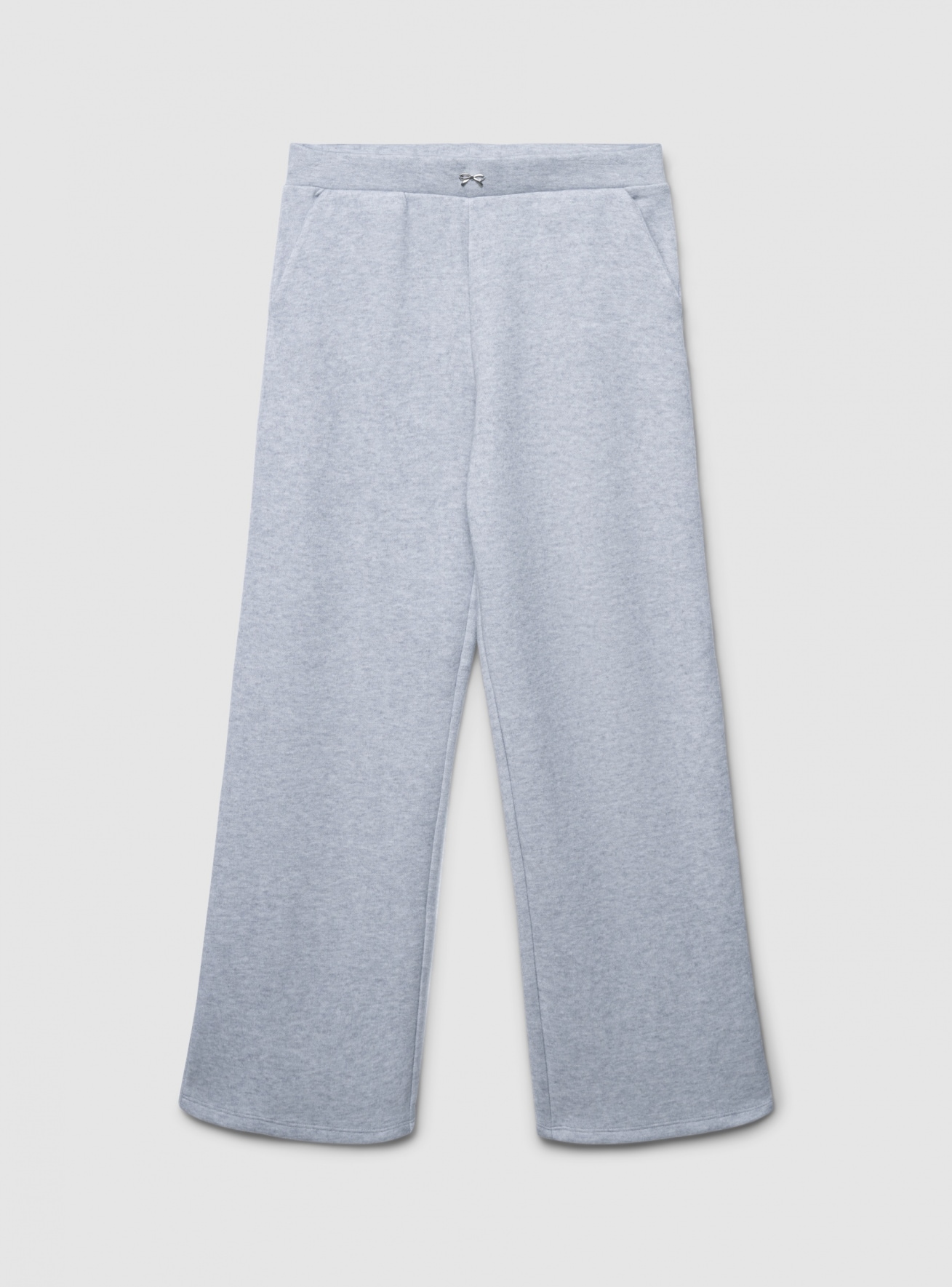 Pantaloni da bambina in tinta unita con linea wide leg e vita con elastico, ideali per il tempo libero e la scuola. Il design lungo offre comfort e libertà di movimento, con tasche laterali pratiche. La cinta presenta un delicato dettaglio a fiocco metallico che aggiunge un tocco femminile. Perfetti con felpe e sneakers per un look casual, oppure con cardigan e ballerine per uscite in città.