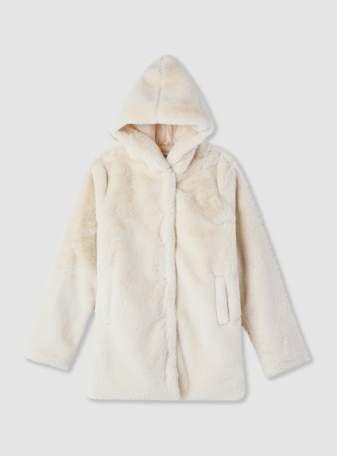 Pelliccia sintetica da bambina con cappuccio, ideale per le giornate fredde. Presenta una chiusura con bottoni e tasche laterali per maggiore praticità. La vestibilità regolare lo rende comodo e adatto a diverse occasioni. Perfetto per completare outfit casual e garantire calore e stile.
