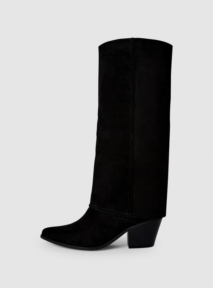 Stivali da donna dallo stile texano, alti sotto al ginocchio con punta affusolata e tacco medio squadrato. La silhouette a tubo valorizza l'outfit con gonne, vestiti e jeans slim, ideale per look quotidiani o serate. Chiusura laterale con zip interna per una calzata pratica, tomaia a tinta unita dall’aspetto vellutato. Altezza tacco 7 cm.