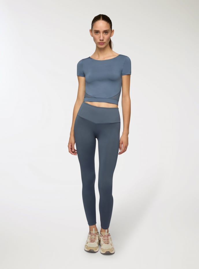 T-shirt sportiva crop con inserti trasparenti Blu polvere