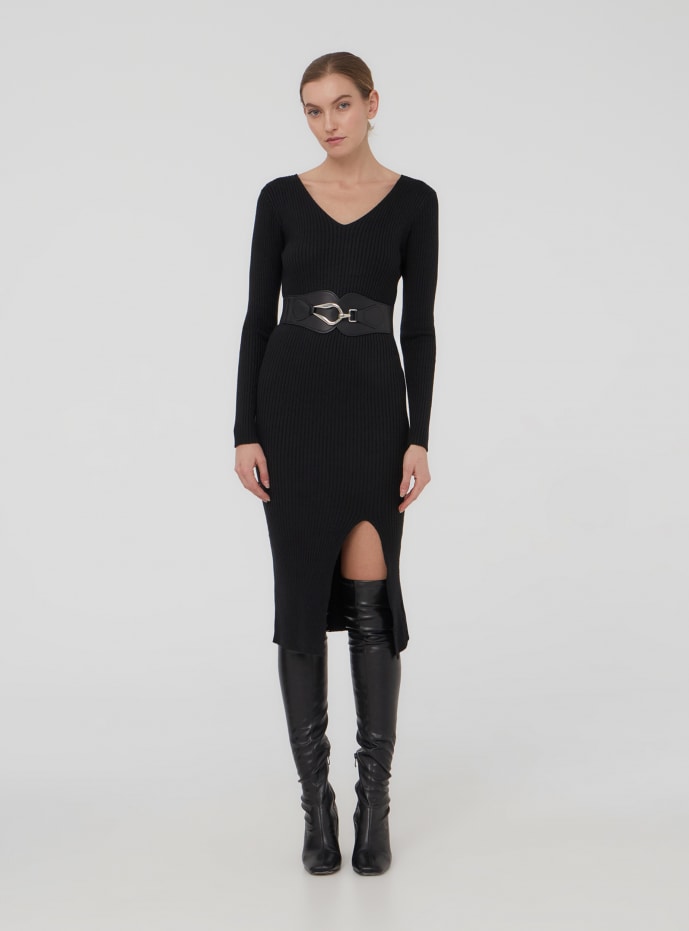 Vestito a costine con scollo profondo Nero