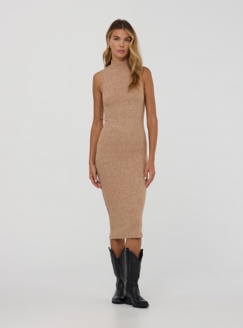 Abito da donna tinta unita dal design raffinato, perfetto per esaltare la silhouette con un tocco sensuale. Il taglio halterneck, con allacciatura dietro al collo, lascia le spalle scoperte, mentre la lavorazione in maglia a coste avvolge il corpo con un fit aderente ma confortevole. Ideale per il tempo libero o un look da sera, si abbina perfettamente a sandali bassi per un outfit casual o a tacchi per un effetto più sofisticato.
