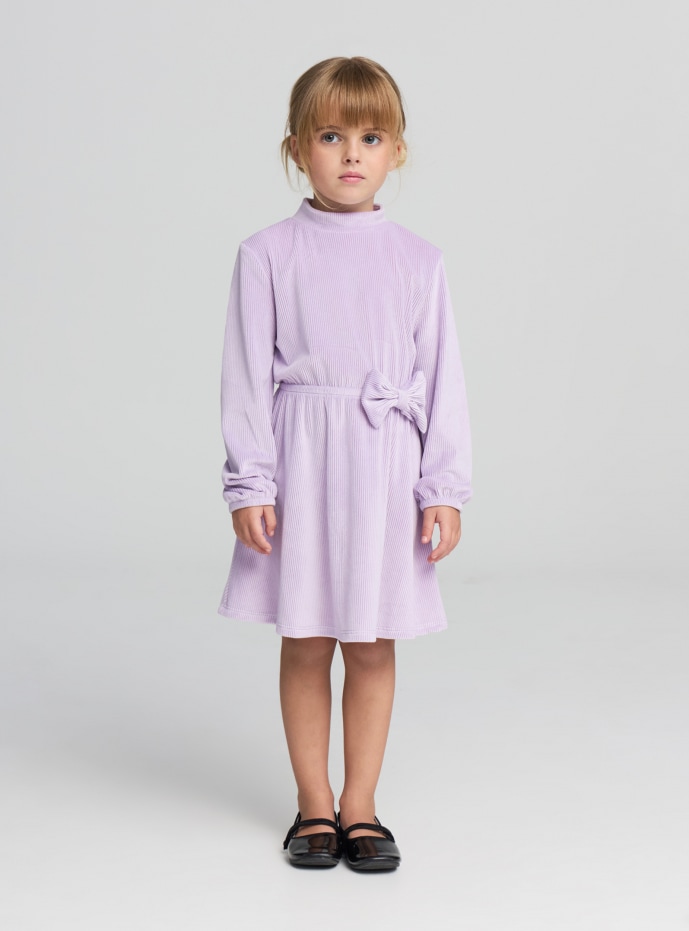 Vestito lupetto a costine con fiocco in tessuto caldo Lilla scuro