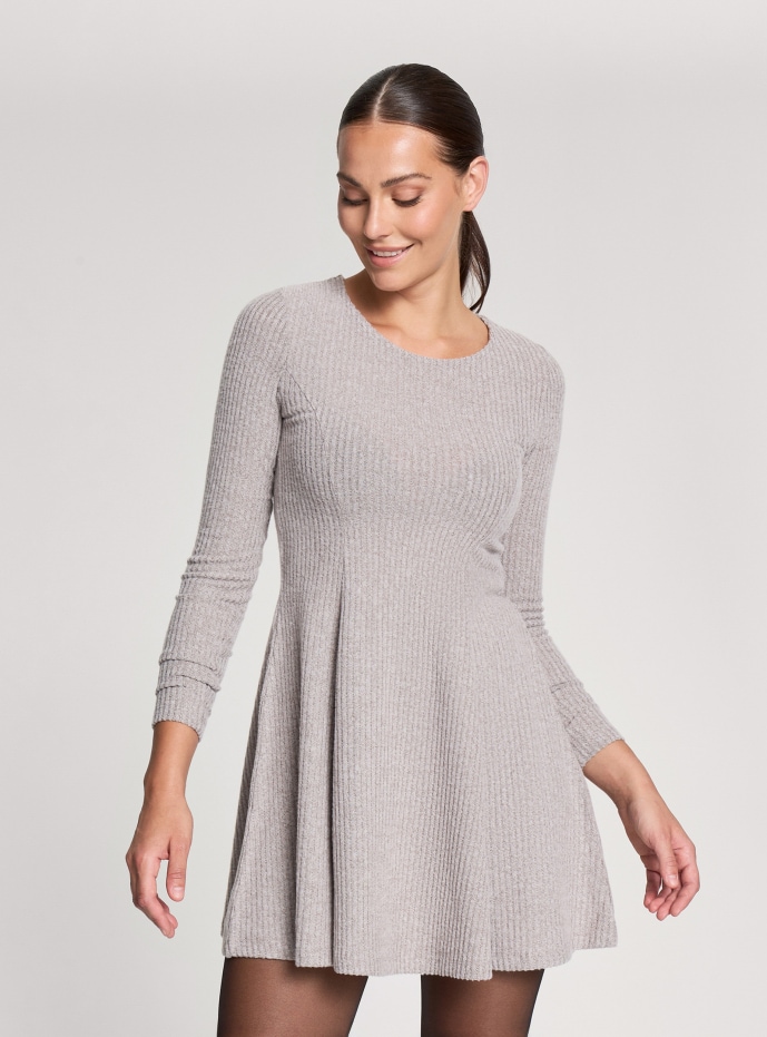Vestito svasato a coste Tortora melange