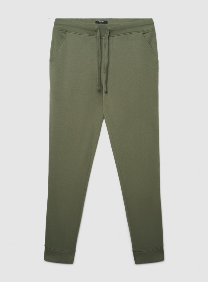 Men's plain gym trousers, perfect for leisure time. Waist with drawstring for practical adjustment and side pockets. Ankle-length with cuffs at the bottom. Regular fit and lightweight fabric, ideal with hoodies or t-shirts and sneakers for a casual and comfortable look.