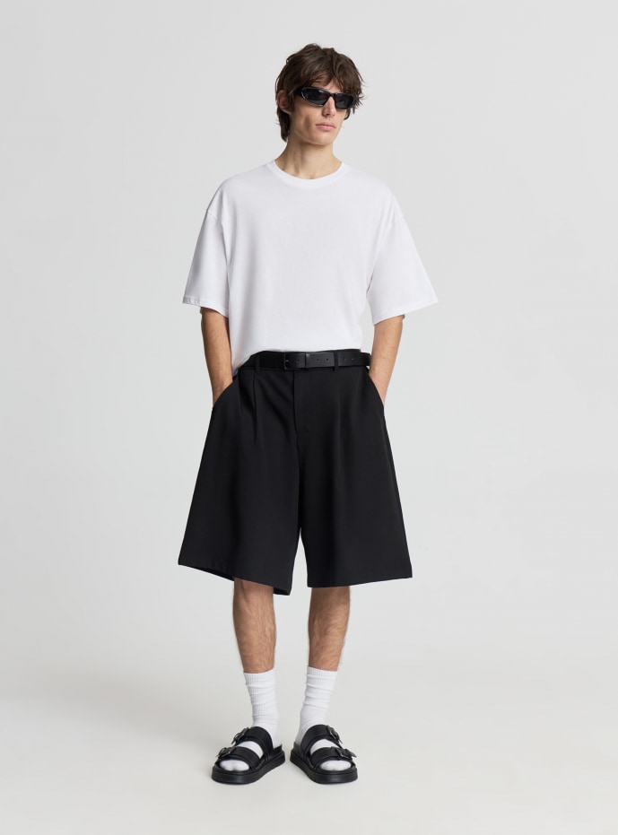 Plain-coloured Bermuda shorts with pleats Black