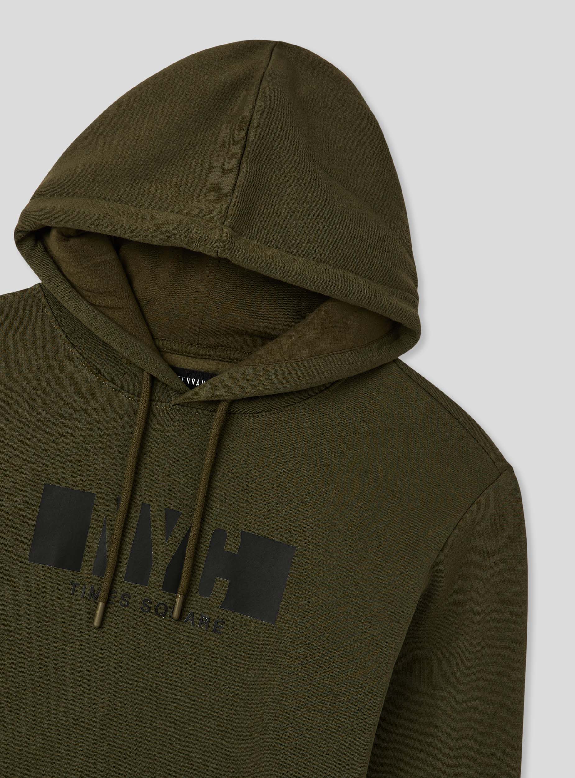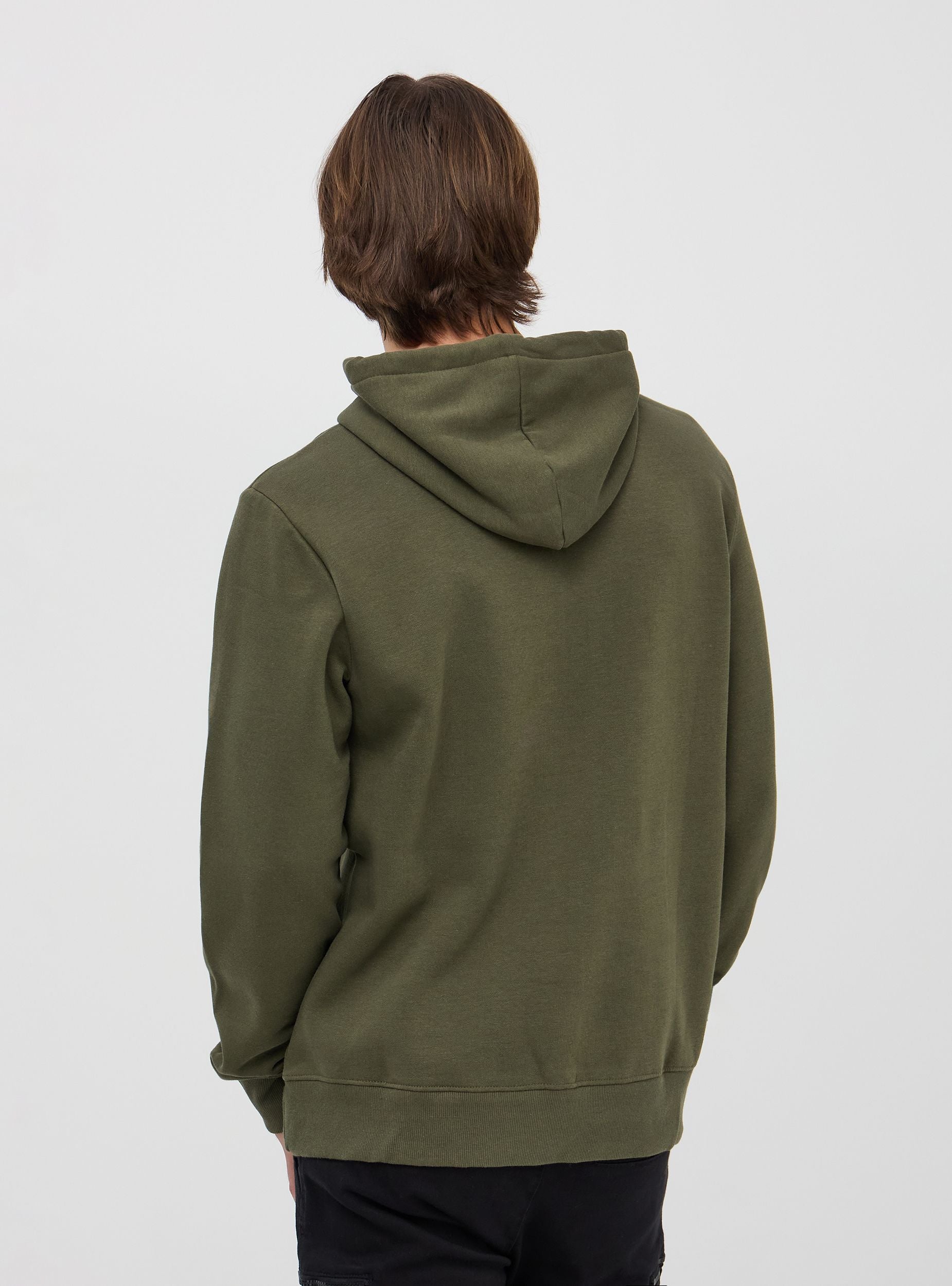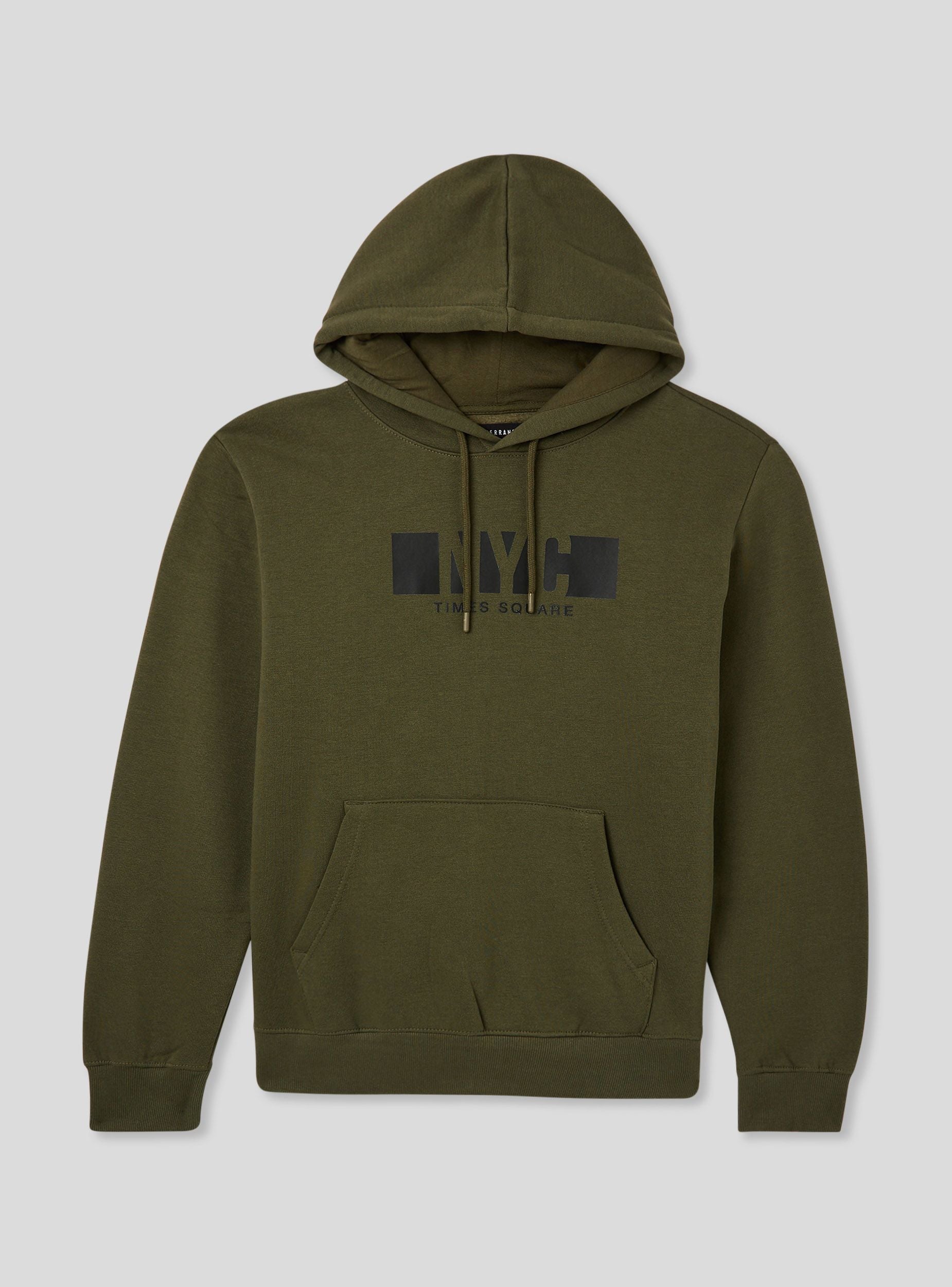 Męska bluza z kapturem i nadrukiem z przodu NYC. Wykonana z miękkiego, ciężkiego materiału, zapewnia optymalny komfort. Model zapinany, z regulowanym kapturem na sznurku, ściągaczami na rękawach i u dołu, oraz przednią kieszenią kangurką. Idealna na casualowy i sportowy look, łatwo łączy się z dżinsami lub spodniami sportowymi.Szczegóły
