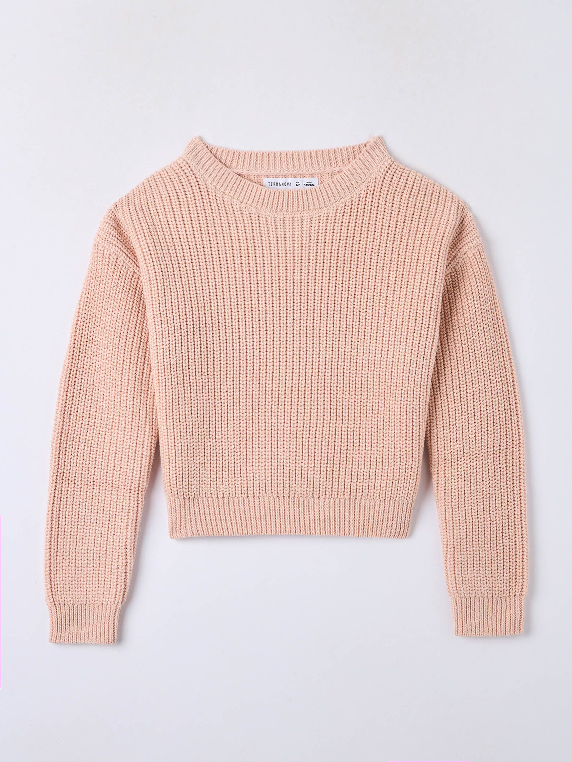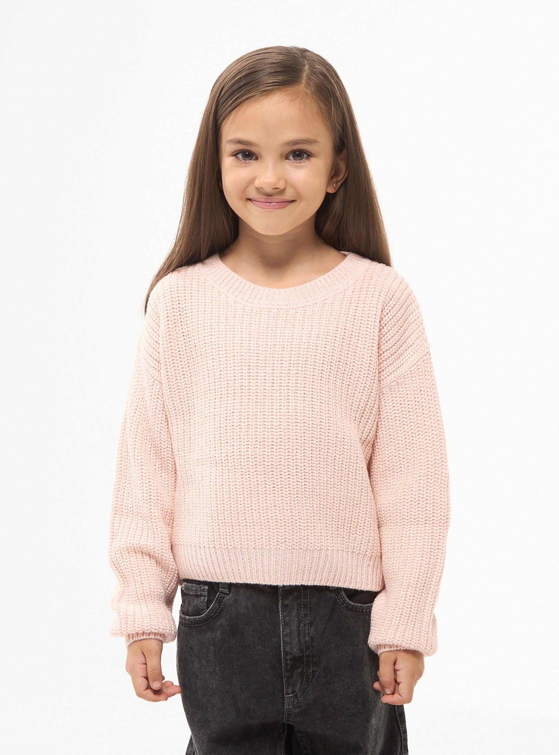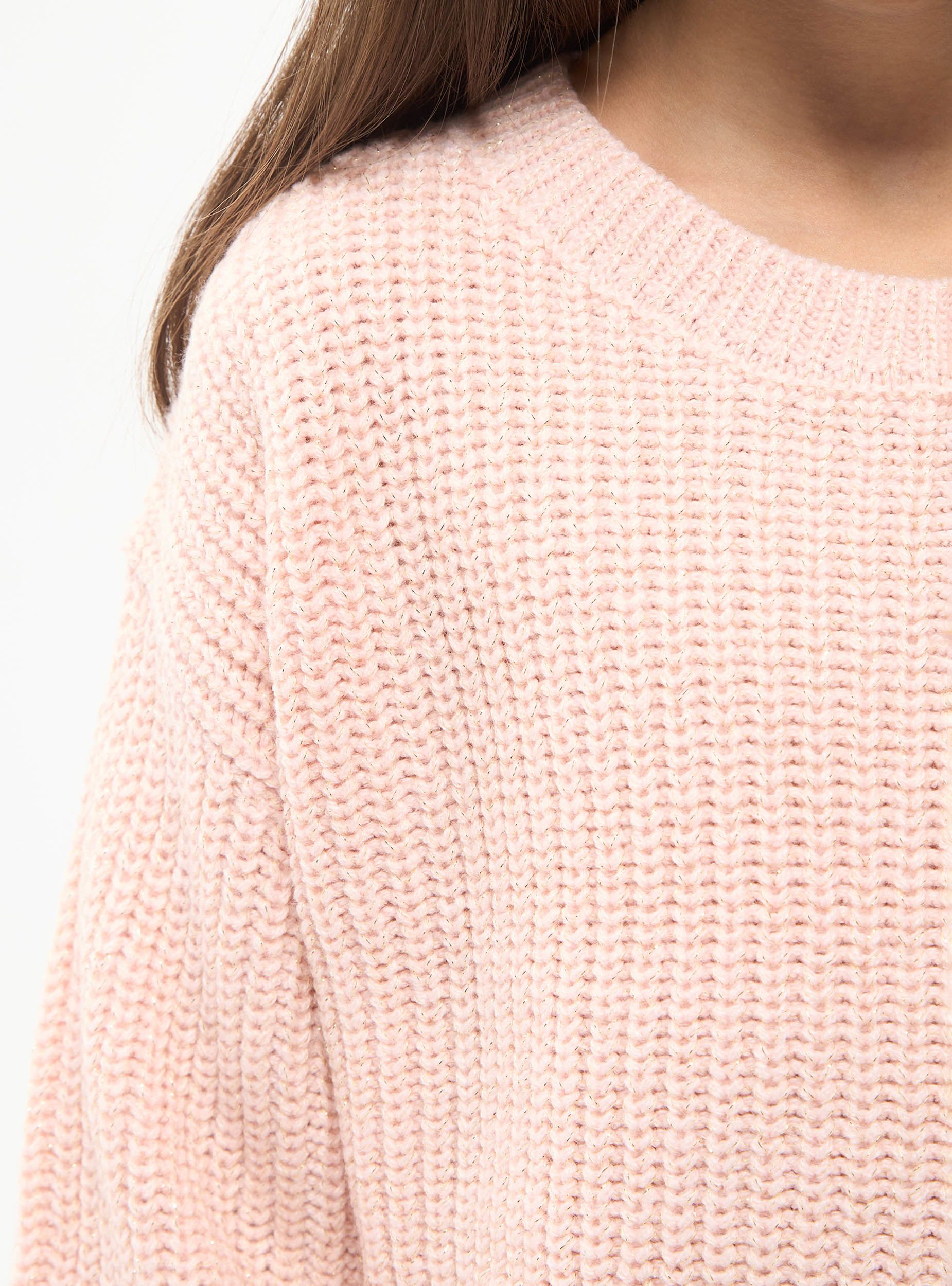 Bluzka dla dziewczynki model okrągły dekolt z tkaniny lurex jednolity kolor. Krótkie dopasowanie. Modelka ma 1,20 m wzrostu i nosi rozmiar 6-7 lat.Szczegóły