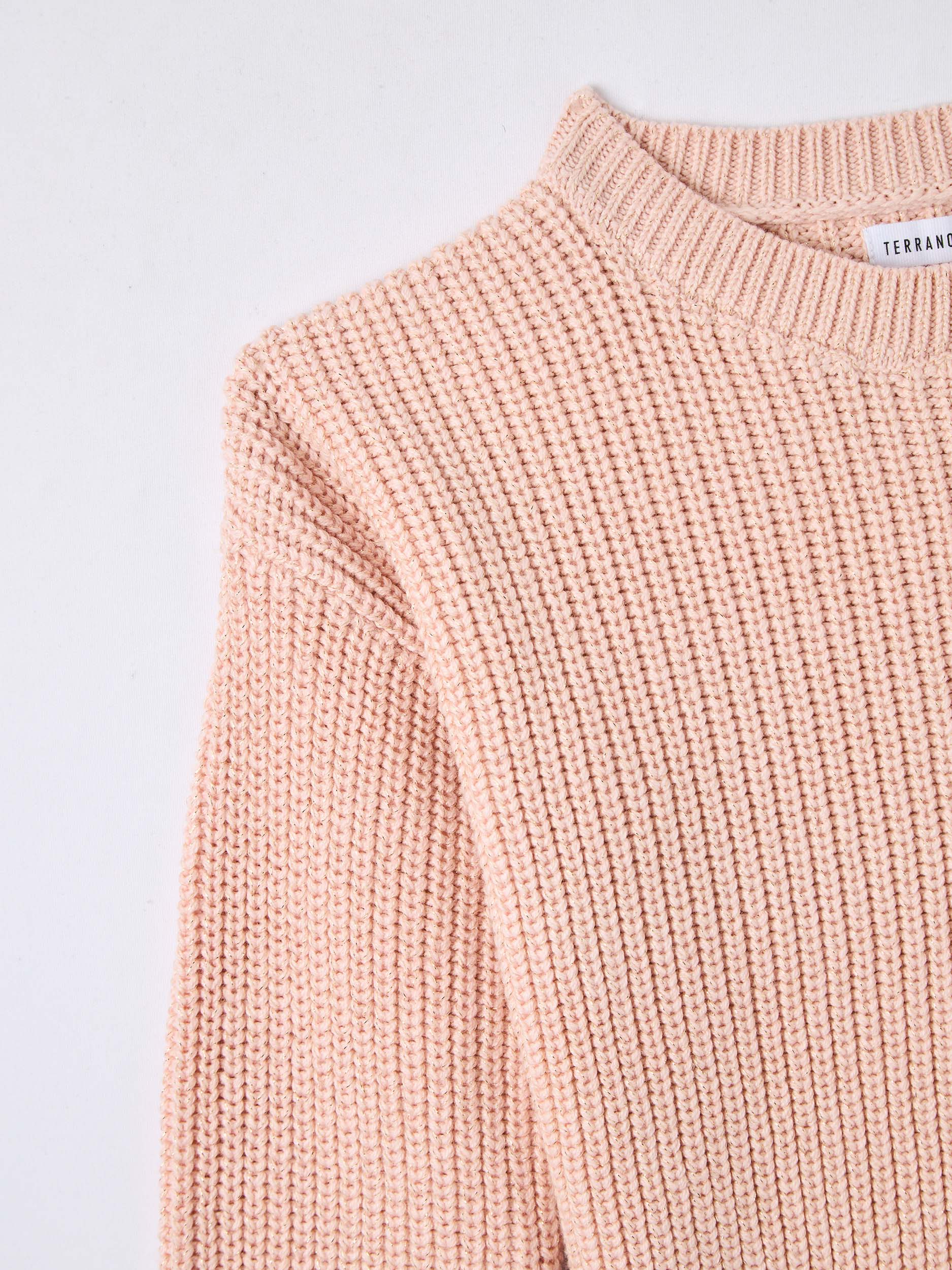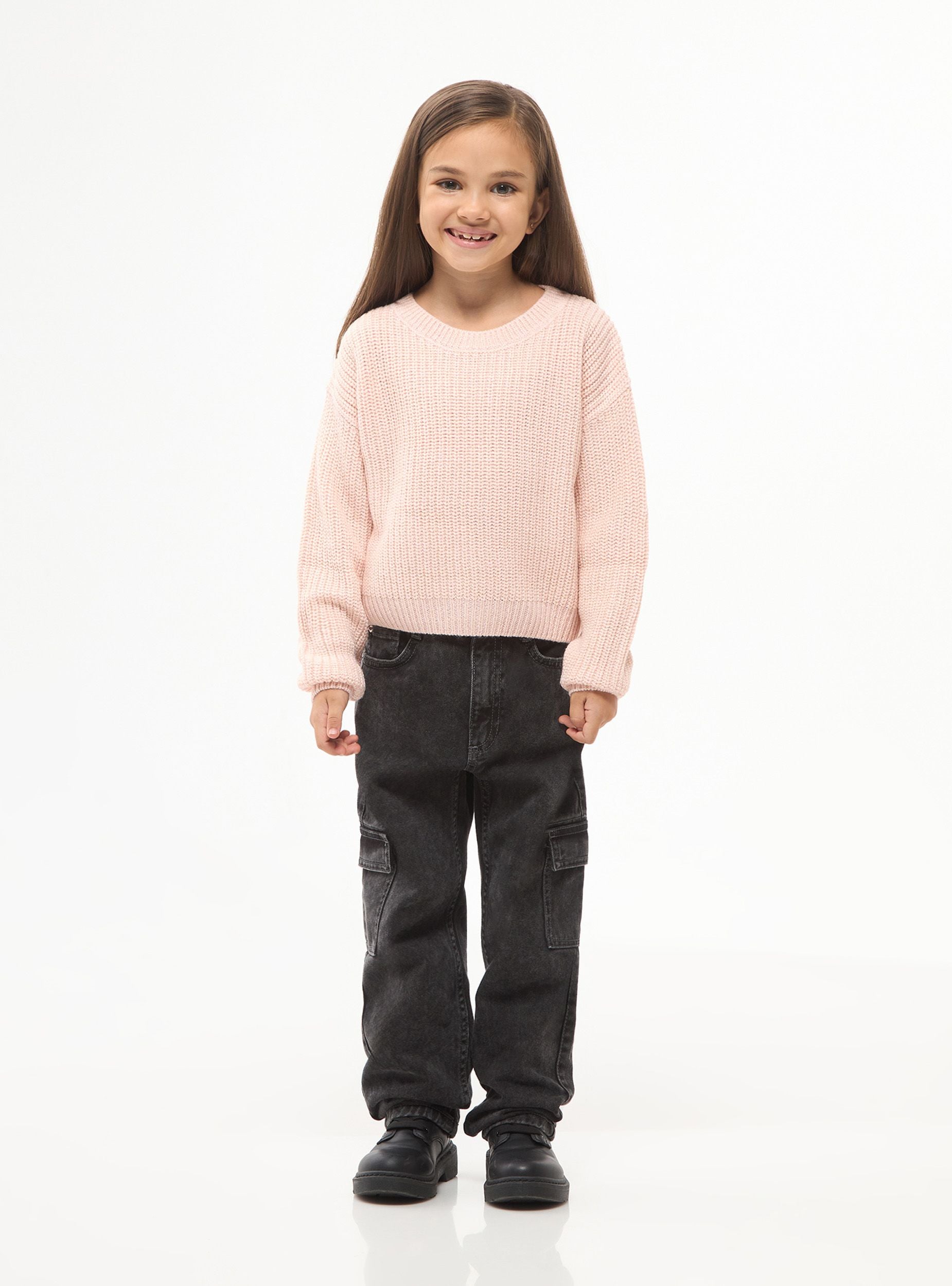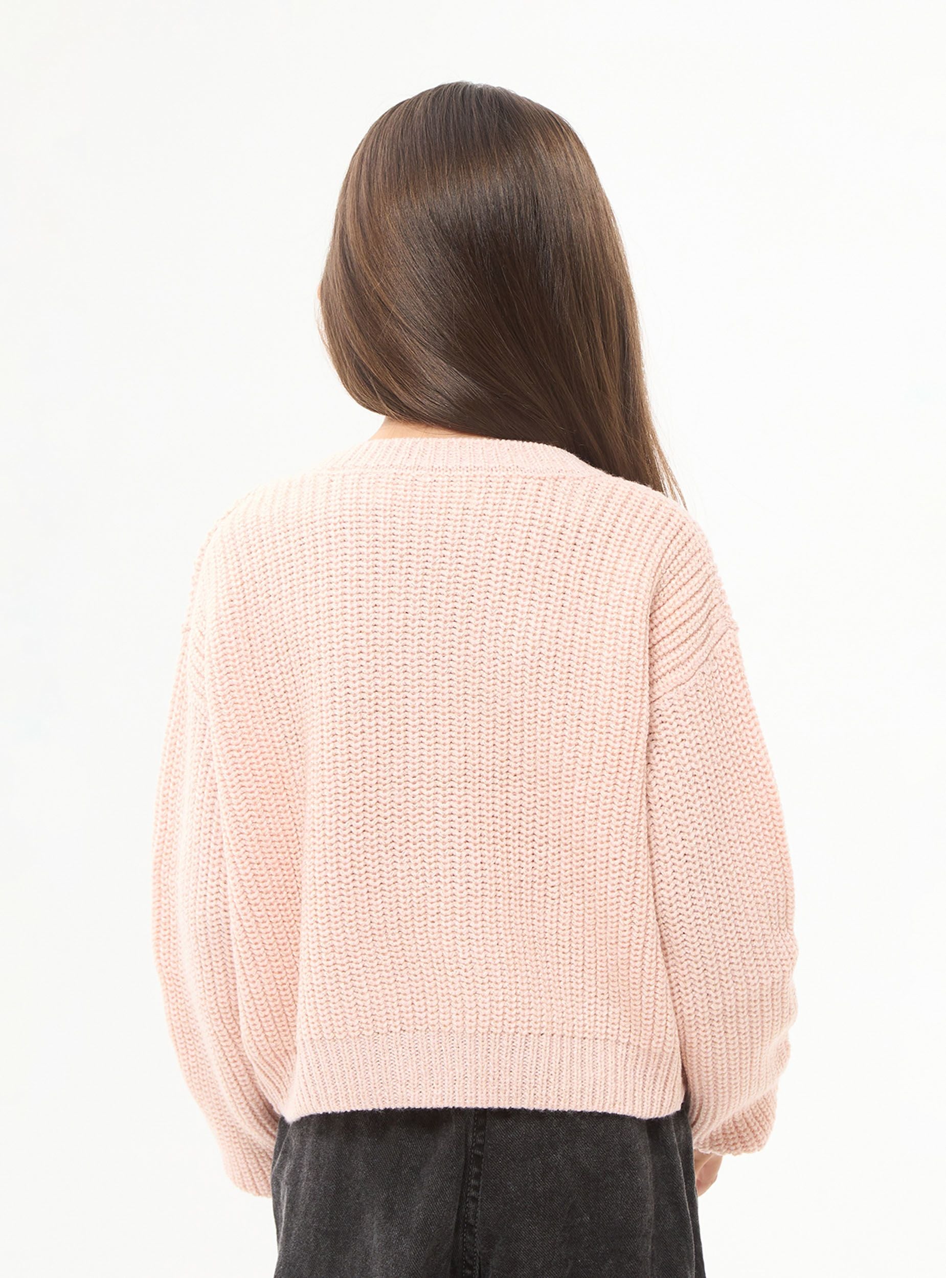 Bluzka dla dziewczynki model okrągły dekolt z tkaniny lurex jednolity kolor. Krótkie dopasowanie. Modelka ma 1,20 m wzrostu i nosi rozmiar 6-7 lat.Szczegóły