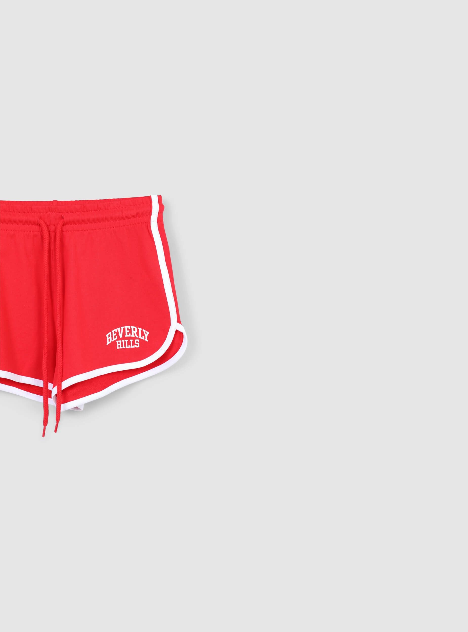 Kobiece lekkie szorty o sportowym designie i college'owym nadruku z przodu. Posiadają wygodny sznurek w talii do regulacji dopasowania i są wykończone kontrastowymi detalami, które nadają dynamiczny charakter wyglądowi. Idealne na czas wolny, te szorty łączą praktyczność i styl, oferując casualowy, ale zadbany wygląd.Szczegóły