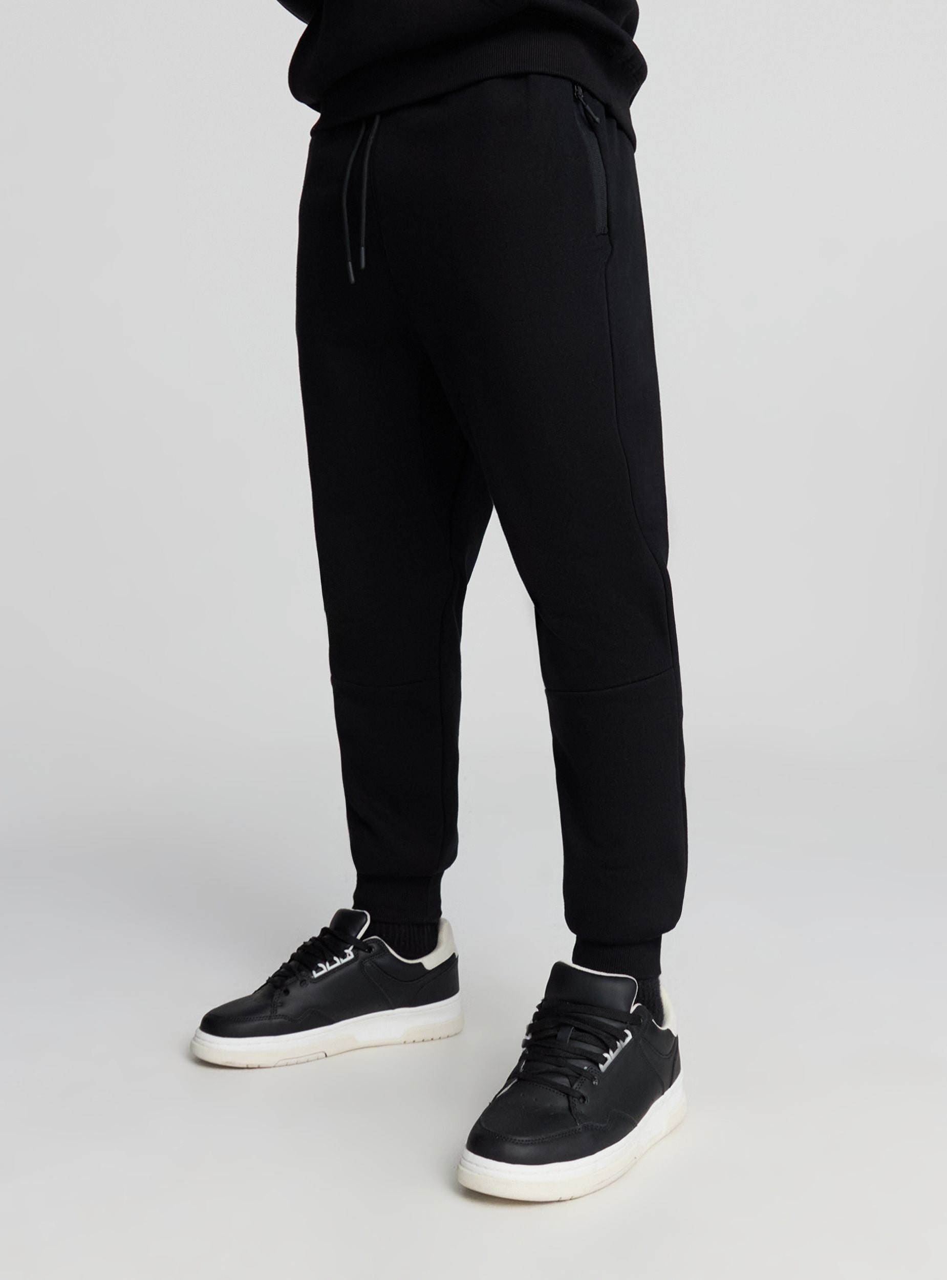 Męskie spodnie techniczne idealne na chłodniejsze dni dzięki ciężkiemu i wygodnemu materiałowi. Posiadają regulowany pas z sznurkiem, boczne kieszenie z zamkiem błyskawicznym oraz elastyczne wykończenie nogawek dla pewnego dopasowania. Linearny i jednolity design sprawia, że łatwo je dopasować do każdego casualowego lub sportowego looku. Doskonałe na czas wolny lub aktywności na świeżym powietrzu, zapewniają komfort i styl w każdej okazji.Szczegóły