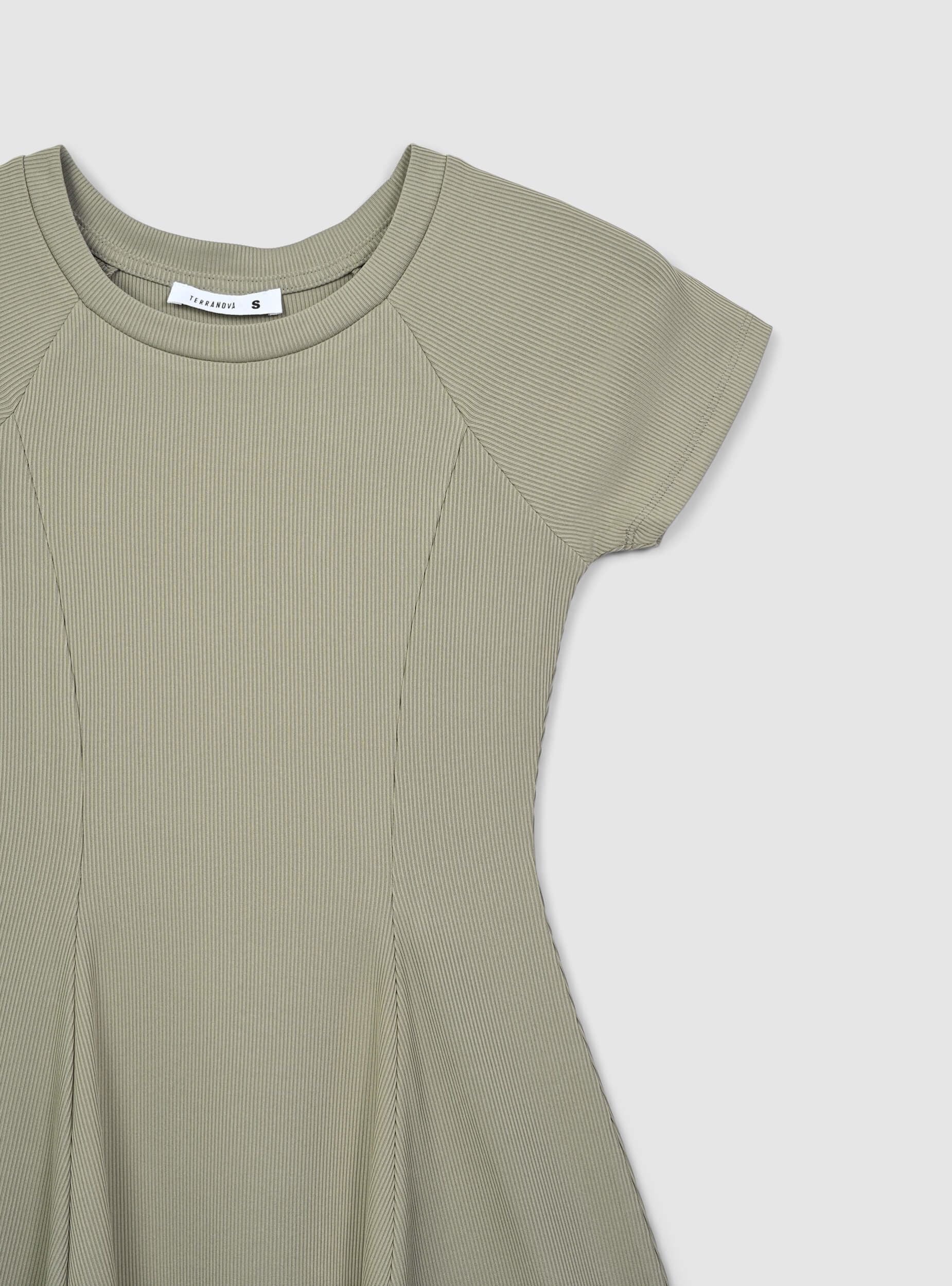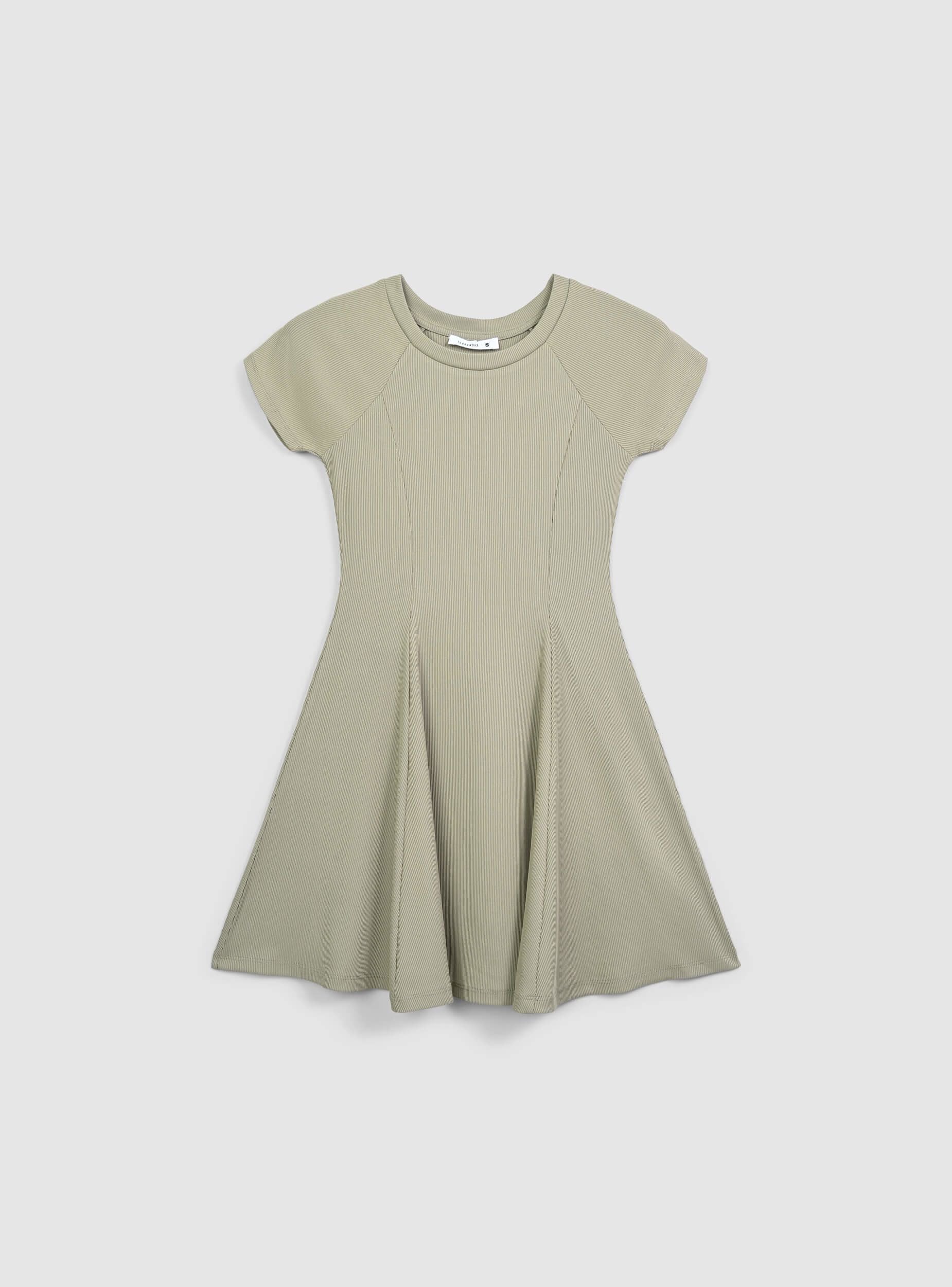 Sukienka damska o minimalistycznym designie w jednolitym kolorze, idealna na casualowy, ale kobiecy look. Ta krótka sukienka charakteryzuje się krojem typu skater, który delikatnie opływa ciało, podkreślając sylwetkę. Krótkie rękawy dodają praktyczności, co czyni ją idealną na sezon letni. Wykonana z elastycznego materiału, zapewnia wygodne dopasowanie, łatwo dostosowując się do ruchów. Wszechstronny i modny element garderoby, idealny na nieformalne okazje lub do zestawienia z bardziej odważnymi akcesoriami dla wyróżniającego się wyglądu.Szczegóły