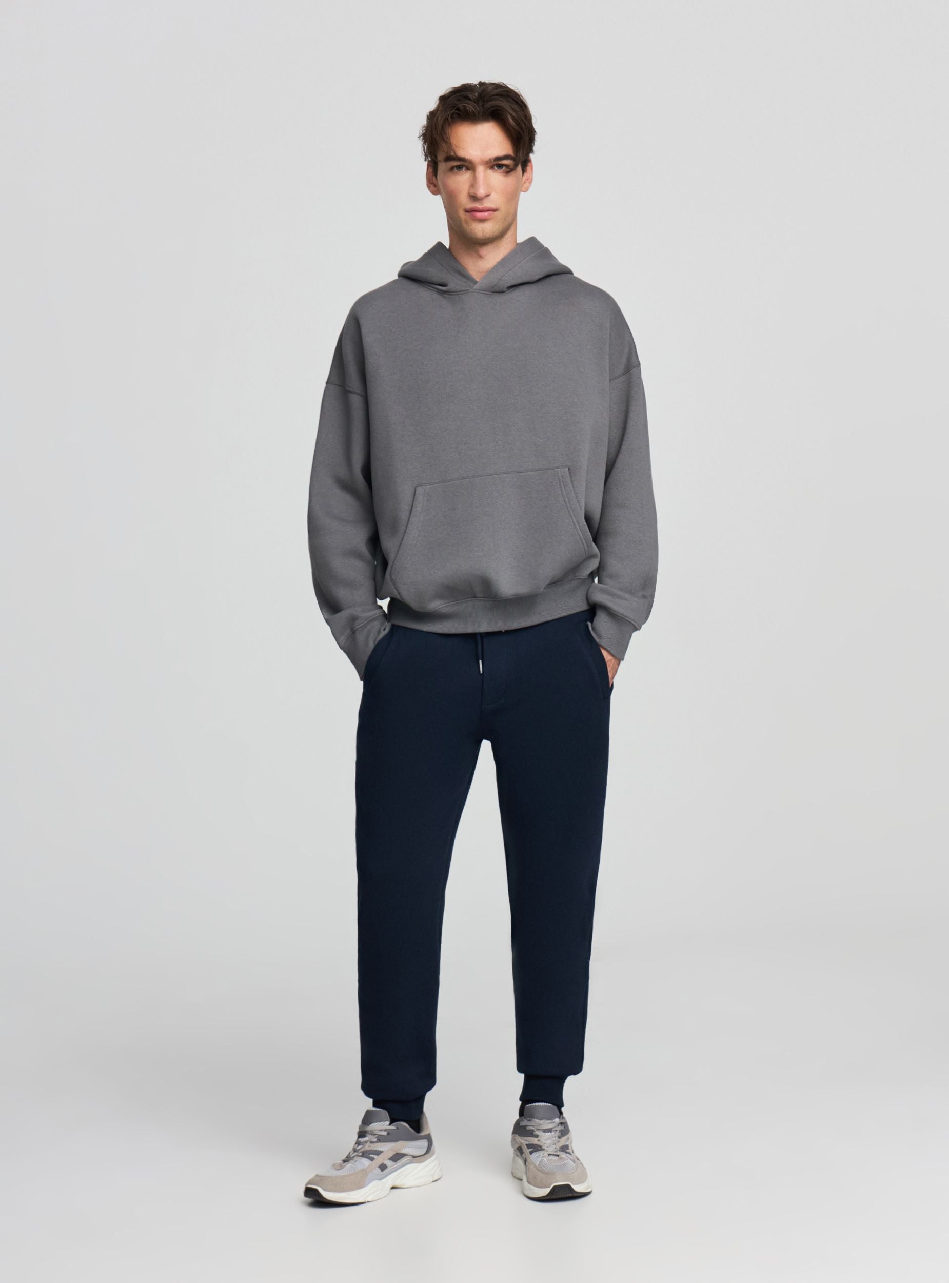 Opakowanie zawiera 2 pary męskich dresów w jednolitym kolorze, idealnych na czas wolny i do relaksu w domu. Model długi z elastycznym pasem regulowanym sznurkiem i metalowymi oczkami, skośne boczne kieszenie na drobne przedmioty oraz mankiety na dole nogawek z prążkowanego ściągacza dopasowujące się do kostki. Regularny krój, łatwy do zestawienia z bluzami z kapturem lub koszulką i sneakersami, tworząc casualowy i praktyczny look.Szczegóły