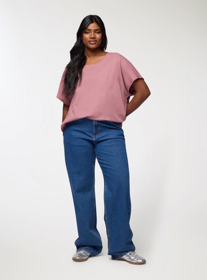 Damska koszulka z krótkim rękawem i jednolitym wzorem. Idealna na casualowy i wszechstronny look, łatwo łączy się z dżinsami, spodniami lub spódnicami. Doskonała na czas wolny lub do uzupełnienia codziennych stylizacji. Wygodne dopasowanie i minimalistyczny styl, odpowiednia na różne okazje.