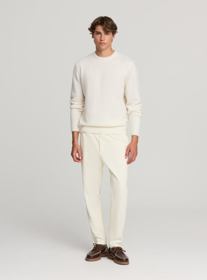 Bluza z okrągłym dekoltem w jednolitym kolorze Biel wełny