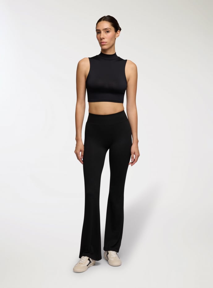 Top damski o minimalistycznym i nowoczesnym stylu, idealny do uzupełnienia strojów o wyrazistym guście. Krótki krój podkreśla talię, podczas gdy projekt z golfem i elastyczny materiał zapewniają wygodne i dopasowane noszenie. Jednolity kolor sprawia, że jest niezwykle uniwersalny, idealny do zestawienia zarówno z spodniami z wysokim stanem, jak i spódnicami, tworząc casualowy lub urbanistyczny look.