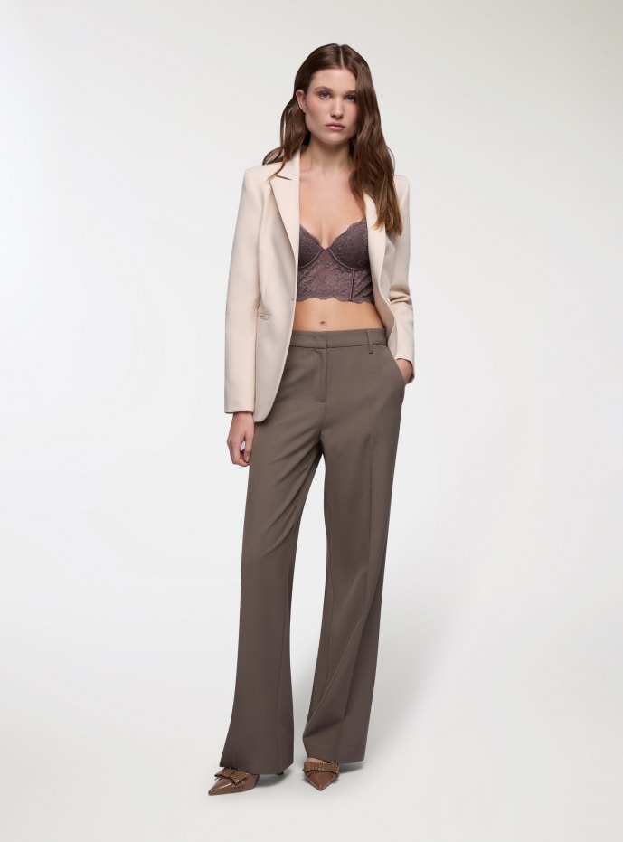Damska marynarka w jednolitym kolorze z klapami typu lancet i jednorzędowym zapięciem na jeden guzik. Krój regularny, długie rękawy oraz kieszenie z cięciem listwowym dla schludnego wyglądu. Podszewka wewnętrzna zapewnia komfort noszenia i staranne wykończenie, idealna do biura, na rozmowy kwalifikacyjne lub eleganckie kolacje. Doskonale komponuje się z eleganckimi spodniami, spódnicami midi lub jeansami, tworząc wyrafinowany look. Strukturalny element garderoby podkreślający sylwetkę dzięki czystemu i nowoczesnemu krojowi.