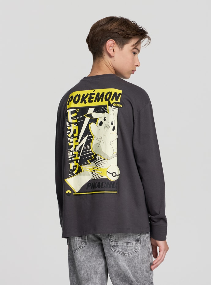 Koszulka dziecięca z długim rękawem z nadrukiem Pokémon®. Idealna na casualowy i zabawny look, ta koszulka ma graficzny nadruk z przodu i z tyłu, z detalami inspirowanymi światem Pokémon®. Doskonała do zestawienia z jeansami lub sportowymi spodniami, zapewnia wygodne dopasowanie i unikalny styl dla małych fanów Pokémon®.