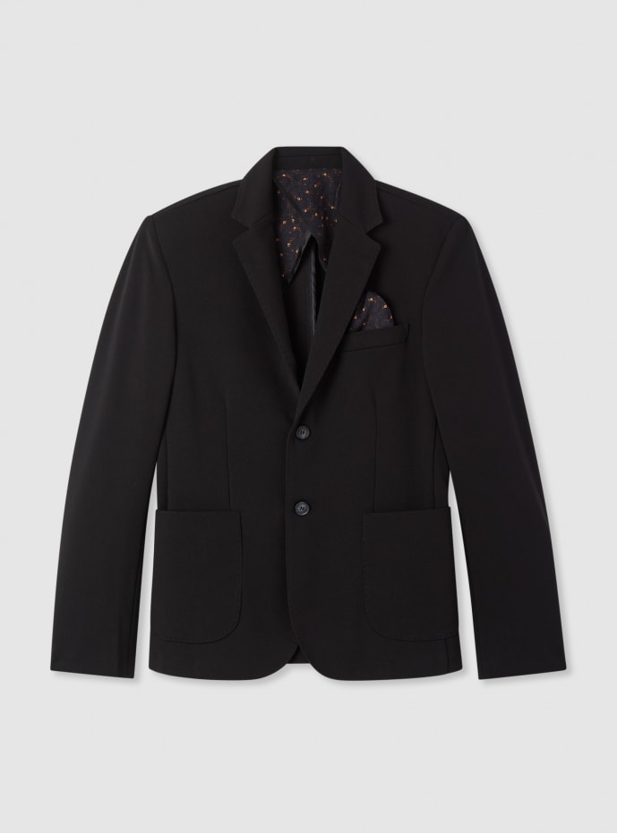 Męska marynarka o eleganckim i nowoczesnym designie, charakteryzująca się czystymi liniami i doskonałym dopasowaniem podkreślającym sylwetkę. Posiada klasyczne klapy oraz zapięcie na dwa guziki. Wyposażona w dopasowaną poszetkę w kieszeni na piersi, idealna na wydarzenia i uroczystości lub do biznesowego looku z koszulą i eleganckimi spodniami. Krój regularny i długie rękawy, doskonała również do noszenia z chinosami dla zadbanego, casualowego stylu.