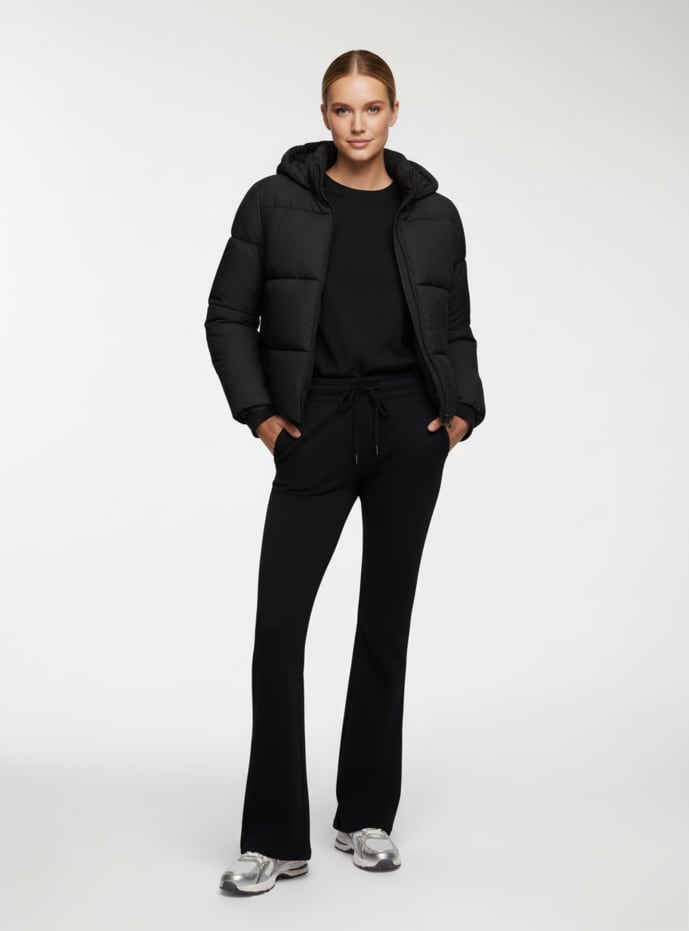 Kurtka damska pikowana z kapturem, idealna na chłodne dni, łącząca styl i wygodę. Wyposażona w zamek błyskawiczny, boczne kieszenie na zamek oraz ściągacz u dołu, zapewnia komfortowe i praktyczne dopasowanie. Doskonała do casualowych i sportowych stylizacji, wyróżnia się nowoczesnym, gumowanym wykończeniem oraz funkcjonalnością. Wszechstronny element garderoby, który uzupełni Twoją zimową szafę.