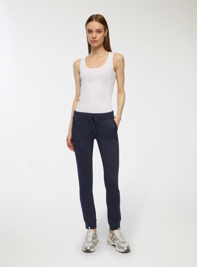 Lekkie spodnie dresowe damskie, idealne do casualowych stylizacji i relaksujących dni. Posiadają wygodny krój dzięki regulowanemu sznurkowi w talii i ściągaczom na kostkach. Jednolity design z praktycznymi bocznymi kieszeniami, doskonałe do zestawienia z bluzami lub t-shirtami.