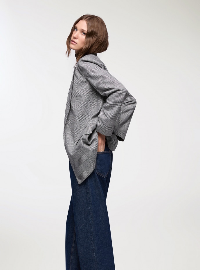 Damska marynarka w kratę księcia Walii, idealna na formalny lub casualowy, elegancki look. Model otwarty z przednimi kieszeniami i regularnym krojem. Doskonała do uzupełnienia eleganckich stylizacji lub dodania wyrafinowanego akcentu codziennym ubraniom. Łatwo łączy się z klasycznymi spodniami lub jeansami, tworząc uniwersalny i nowoczesny wygląd.
