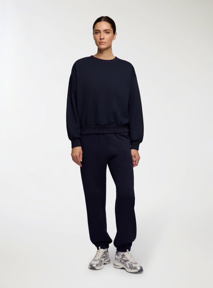 Damskie spodnie dresowe o wysokim stanie z elastycznym pasem i bocznymi kieszeniami. Komfort i styl spotykają się w tych jednolitych spodniach, idealnych na chłodniejsze miesiące. Model charakteryzuje się wygodnym krojem z wysokim stanem i wewnętrzną elastyczną taśmą, która zapewnia wsparcie bez ucisku. Elastyczne mankiety przy kostkach nadają nowoczesny i sportowy wygląd, idealny na chwile relaksu, treningu lub wolnego czasu. Wyposażone w praktyczne boczne kieszenie, te spodnie z ciężkiego materiału zapewniają ciepło i funkcjonalność w każdej sytuacji. Podstawowy, ale niezbędny element garderoby, stworzony dla tych, którzy szukają odpowiedniej równowagi między praktycznością a modą.