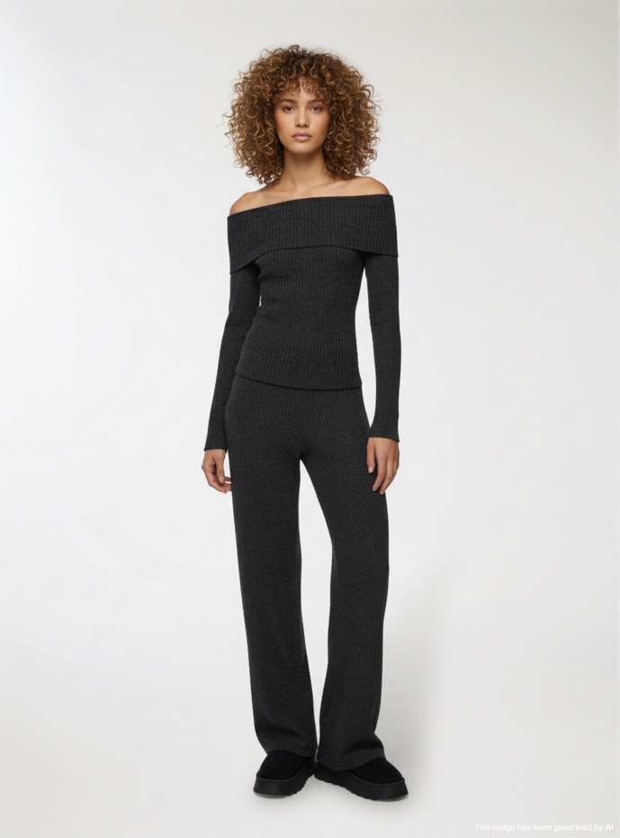 Damskie spodnie o nowoczesnym i uniwersalnym designie, idealne na casualowy i wygodny look. Charakteryzują się szerokim krojem, elastycznym pasem i krojem typu wide leg, który zapewnia swobodę ruchów. Doskonałe do zestawienia z t-shirtami lub koszulami na co dzień. Gładki kolor i prążkowany wzór sprawiają, że łatwo je łączyć z różnymi stylami i dodatkami.