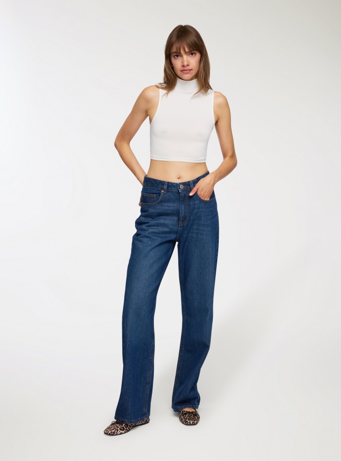Damski top o minimalistycznym i nowoczesnym stylu, idealny do uzupełnienia strojów o zdecydowanym guście. Krótki krój podkreśla talię, podczas gdy design z wysokim kołnierzem i elastyczny materiał zapewniają wygodne i dopasowane dopasowanie. Jednolity kolor sprawia, że jest niezwykle wszechstronny, idealny do zestawienia zarówno z spodniami z wysokim stanem, jak i ze spódnicami na casualowy lub miejski look.