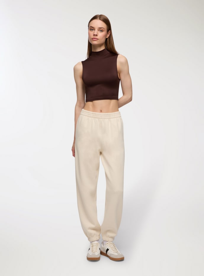 Top damski o minimalistycznym i nowoczesnym stylu, idealny do uzupełnienia strojów o wyrazistym guście. Krótki krój podkreśla talię, podczas gdy design z golfem i elastyczny materiał zapewniają wygodne i dopasowane dopasowanie. Jednolity kolor sprawia, że jest niezwykle wszechstronny, idealny do zestawienia zarówno z spodniami z wysokim stanem, jak i ze spódnicami na casualowy lub miejski look.