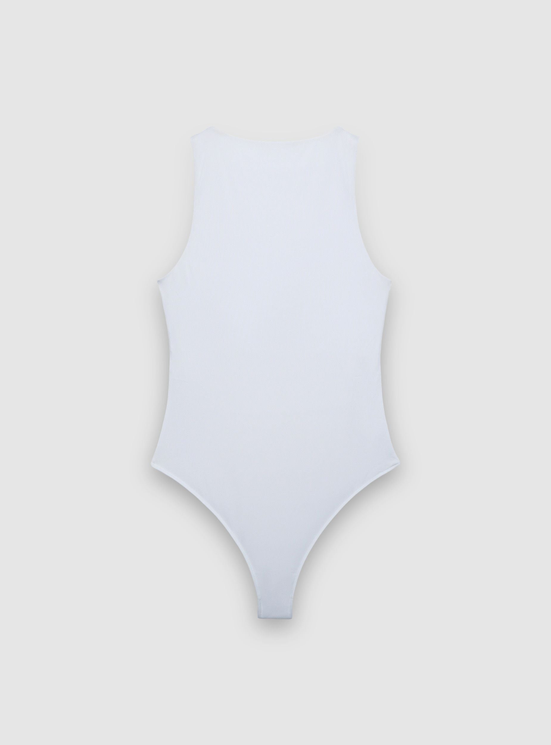Body da donna a tinta unita con scollatura americana e spalline larghe. Chiusura con bottoni a pressione al cavallo per praticità. Vestibilità aderente che segue la linea del corpo, ideale sotto blazer o camicie per look curati, ma perfetto anche con jeans o gonne per outfit casual.Dettagli