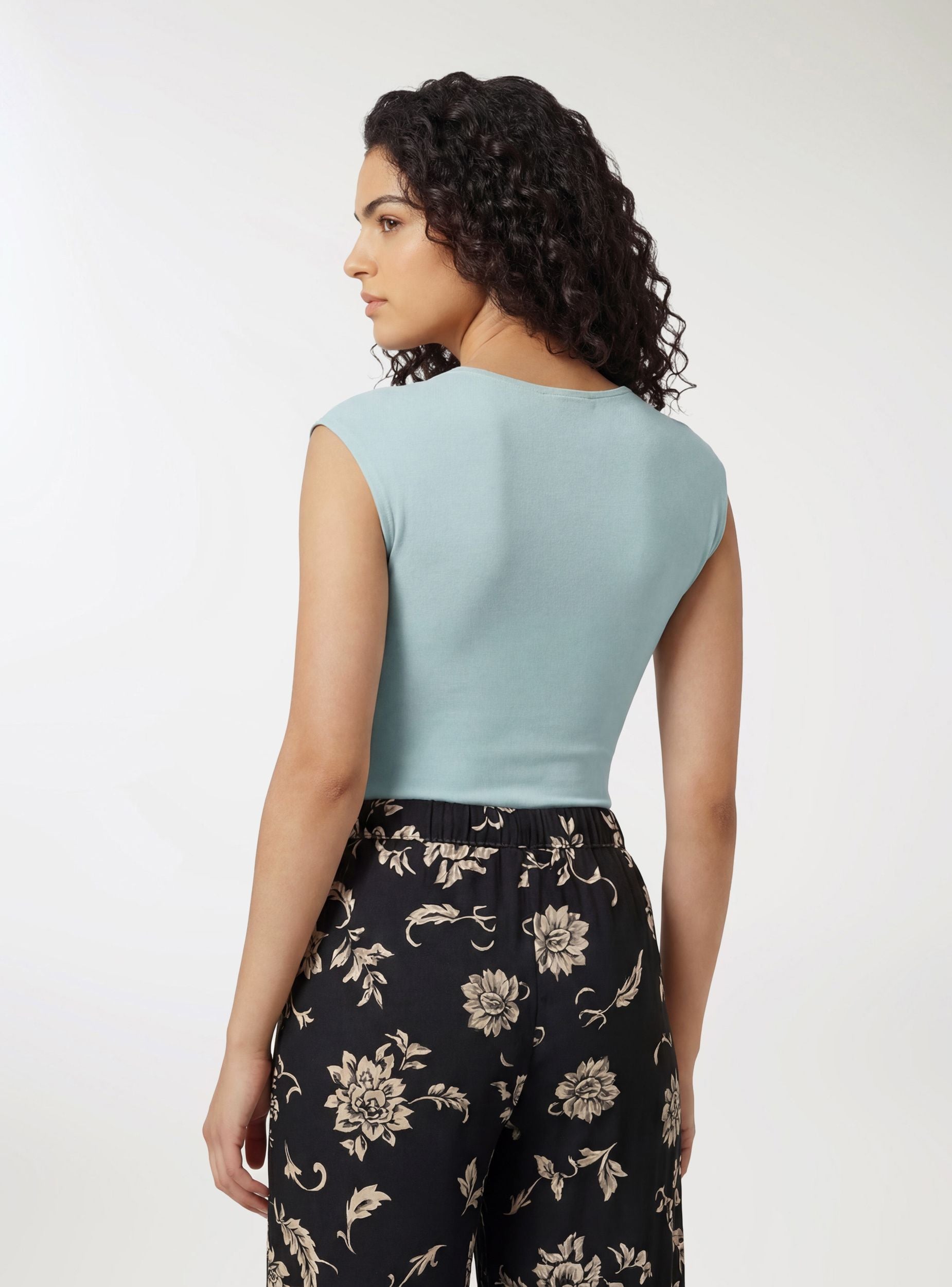 Body da donna a tinta unita con girocollo e maniche ad aletta. Linea pulita e aderente che valorizza la figura, ideale sotto blazer, gonne midi o jeans per look curati dal giorno alla sera. Pratici bottoncini automatici al cavallo per una vestibilità comoda. Perfetto per creare outfit a strati o minimal grazie al design essenziale.Dettagli