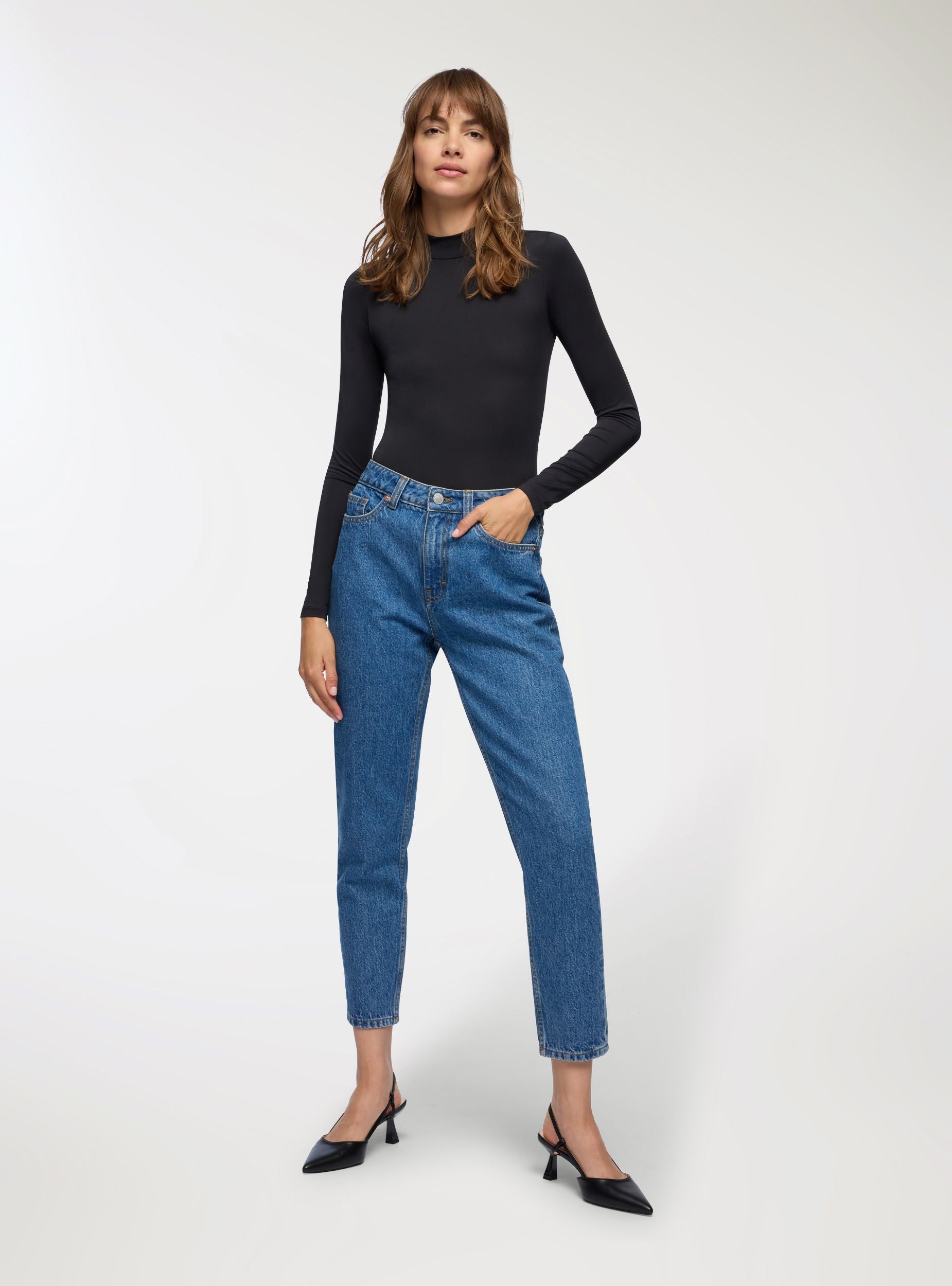 Body da donna con design aderente e maniche lunghe, ideale per outfit eleganti e formali. Presenta un collo alto che aggiunge un tocco sofisticato e si adatta perfettamente al corpo, garantendo una vestibilità comoda e moderna. Perfetto da abbinare a pantaloni o gonne per un look raffinato e versatile. Adatto per occasioni lavorative o serate speciali.Dettagli
