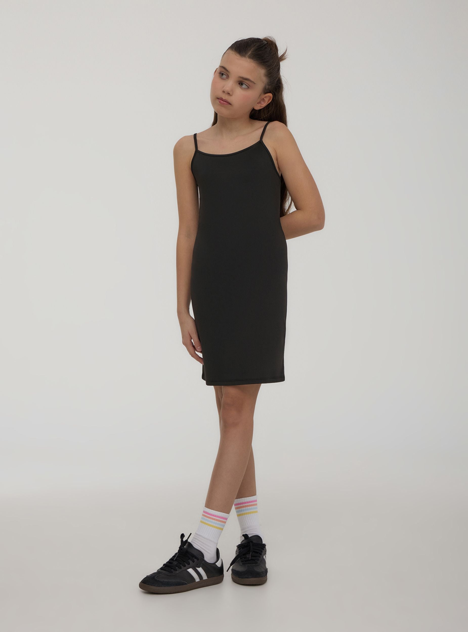 Abito da bambina perfetto per le giornate estive, caratterizzato da una tinta unita che si adatta facilmente a ogni occasione. Dotato di comode spalline sottili, offre una vestibilità elasticizzata che garantisce libertà di movimento e comfort durante tutta la giornata. Linea semplice e versatile, ideale sia per il tempo libero che per un look più curato, abbinabile a sandali o sneakers.Dettagli