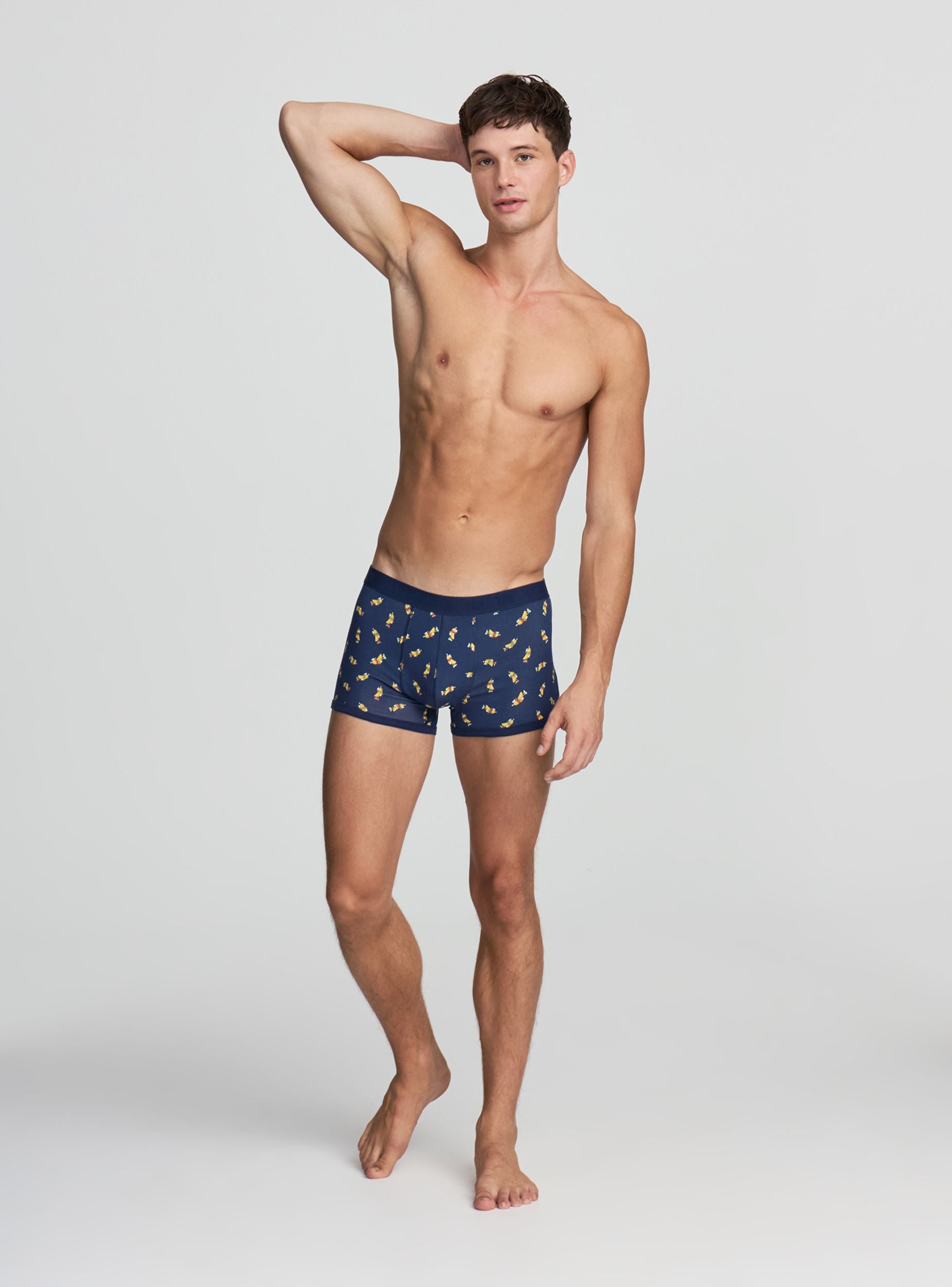 Boxer da uomo, caratterizzati da una fantasia vivace con motivi di banane. Ideali per un look casual e confortevole, questi slip offrono una vestibilità aderente e un design moderno. Perfetti per l'uso quotidiano, garantiscono stile e praticità.