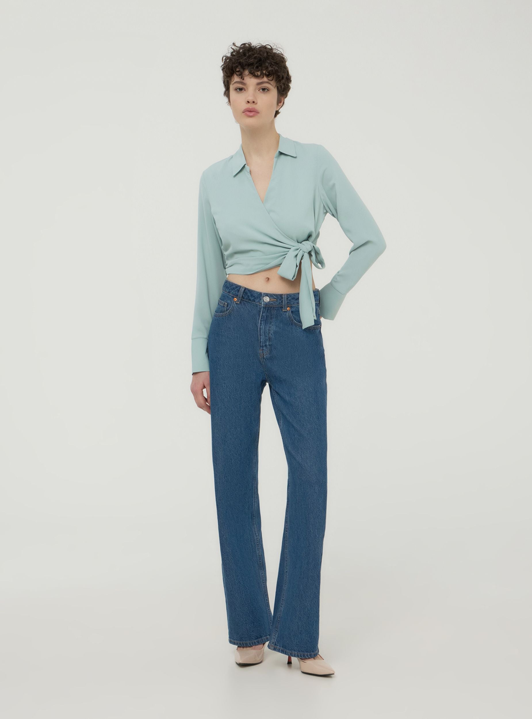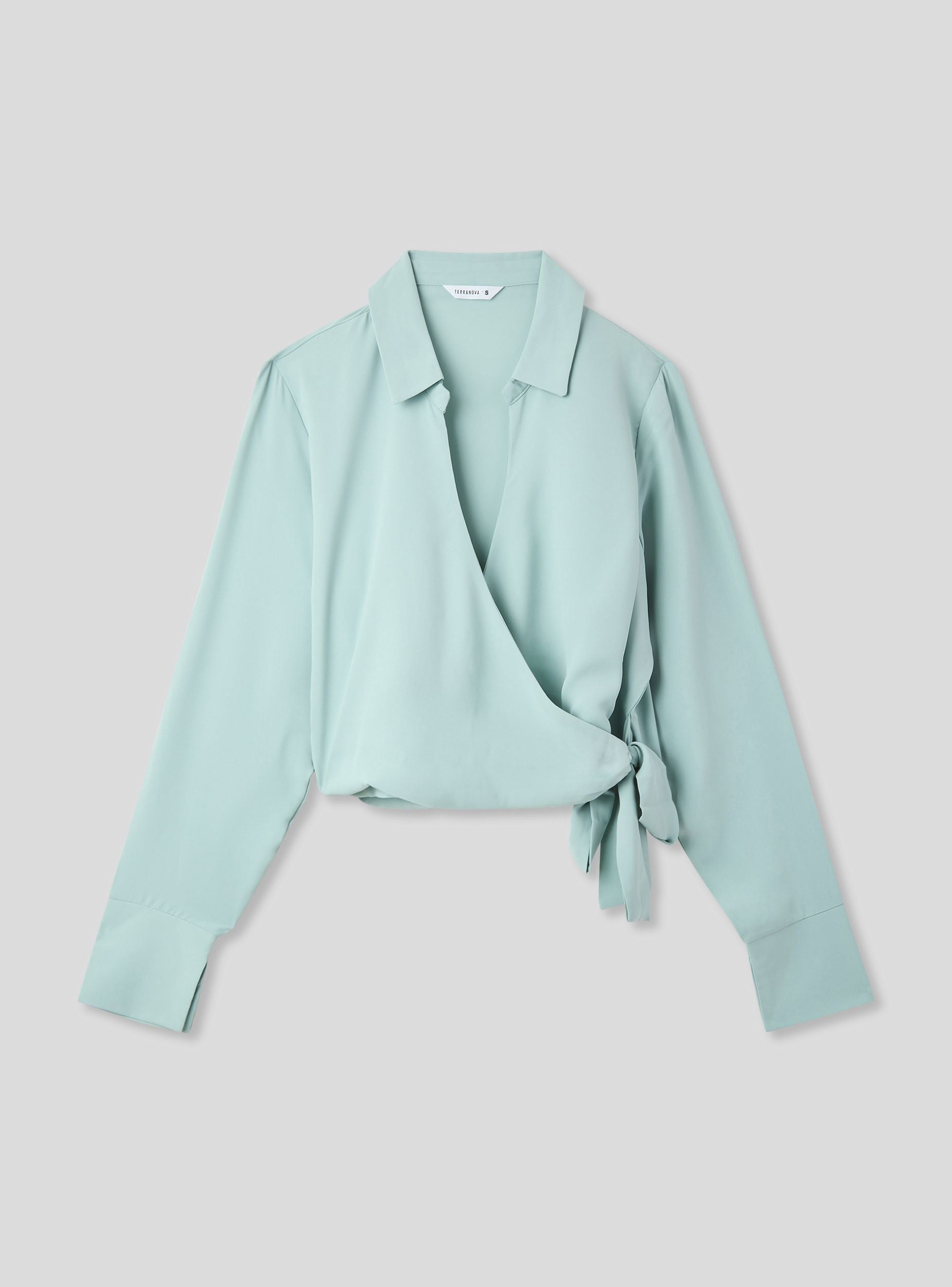 Camicia da donna dallo stile moderno e raffinato, caratterizzata da un design crop con nodo incrociato che aggiunge un tocco di originalità. Le maniche lunghe con polsini conferiscono eleganza, mentre il colletto sottolinea il taglio femminile. Ideale per creare look versatili e alla moda, perfetta per abbinamenti sia casual che più ricercati, garantendo sempre una vestibilità confortevole e trendy.Dettagli