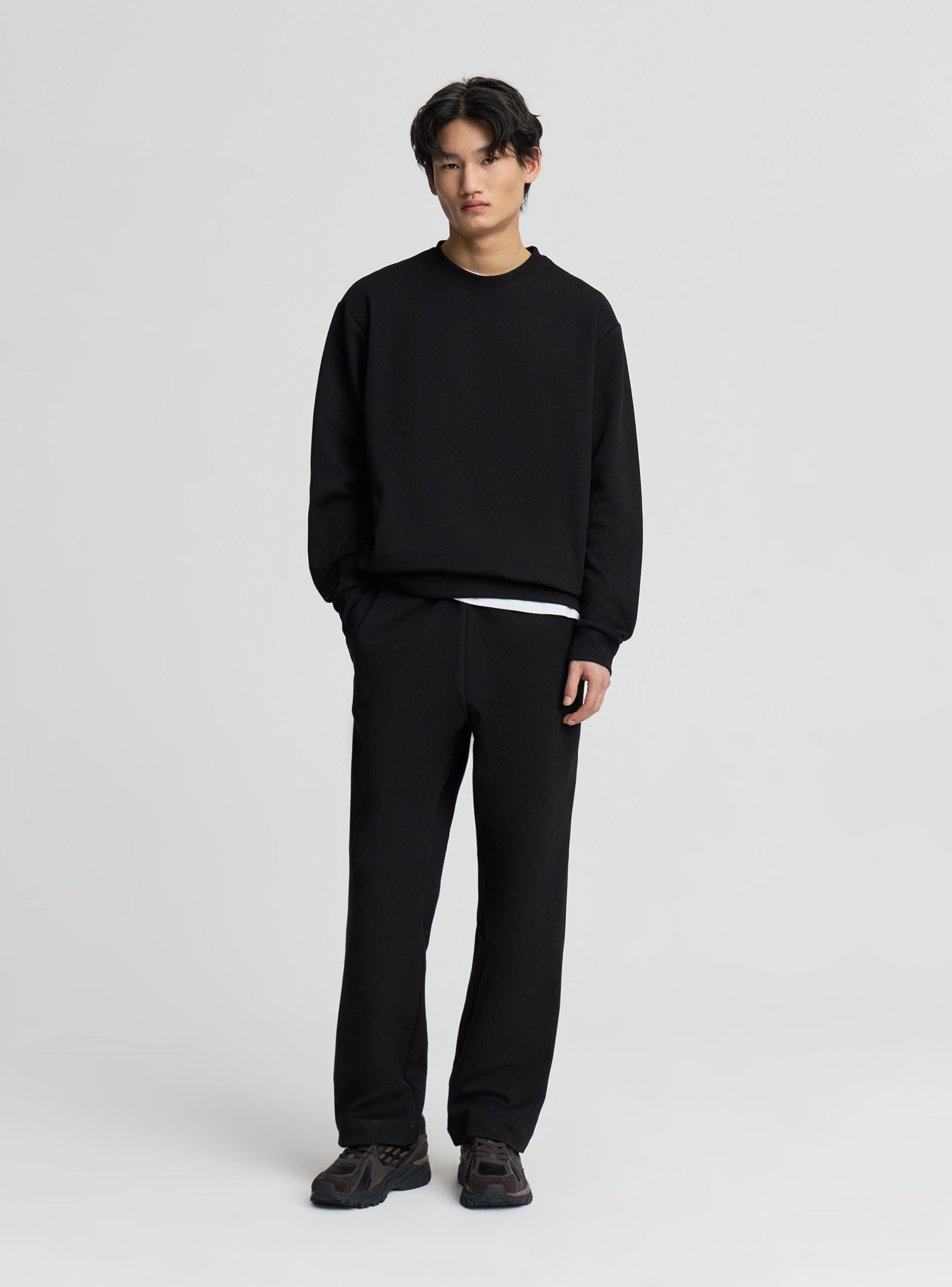 Felpa da uomo leggera senza cappuccio e senza zip, dal design essenziale e a tinta unita. Il girocollo a costine e i polsini elasticizzati donano un look curato e contemporaneo. Versatile e comoda, si abbina facilmente a jeans, pantaloni chino o tuta per un outfit casual impeccabile. Le maniche lunghe e il fondo con banda elastica completano un capo pensato per il tempo libero e la vita di tutti i giorni, da indossare in città o nel weekend.Dettagli