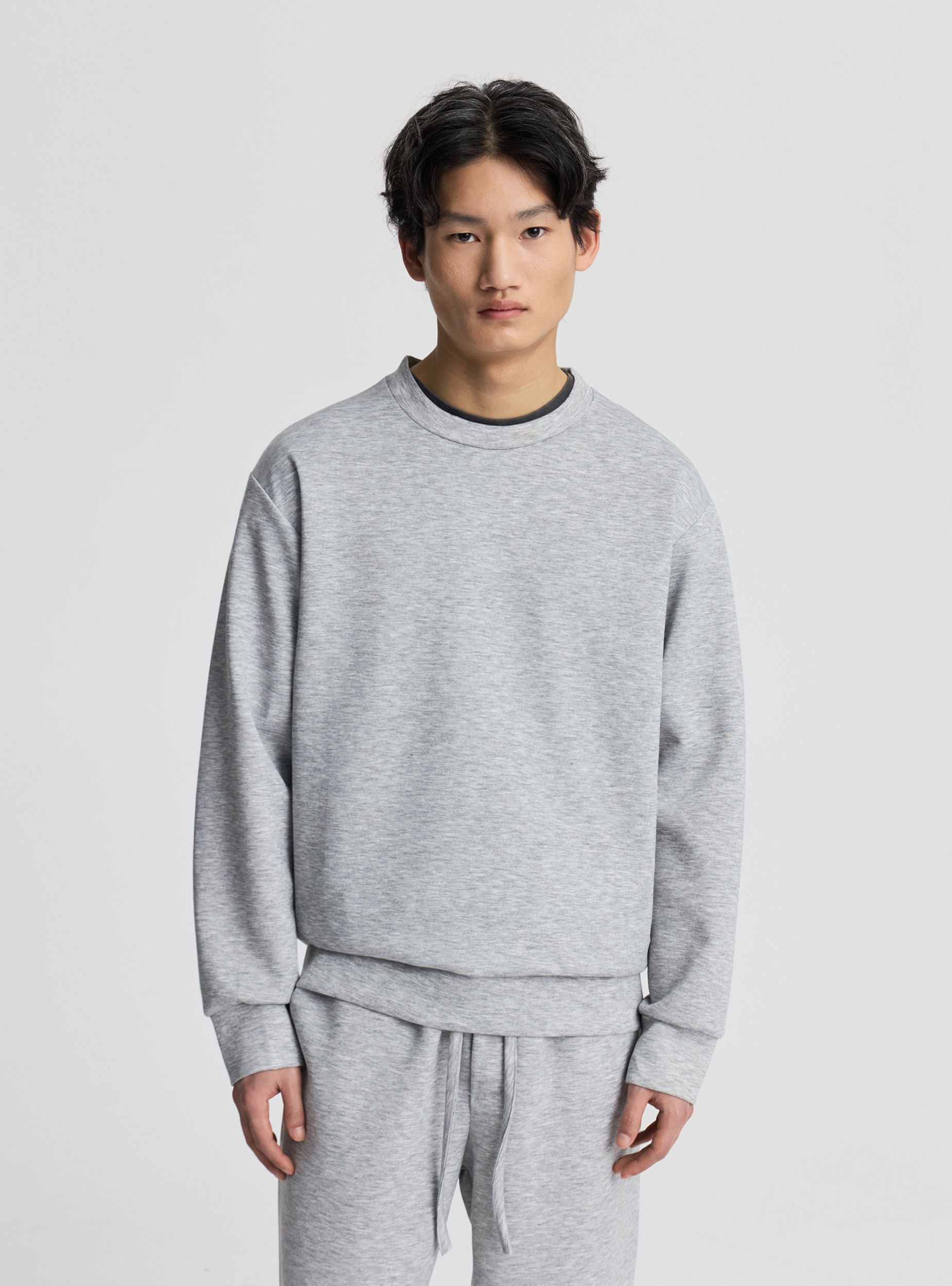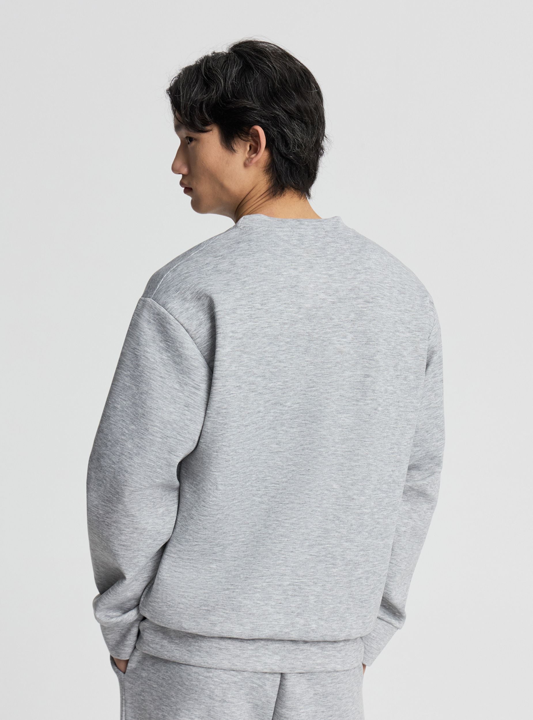 Felpa girocollo tinta unita senza cappuccio - Grigio chiaro melange